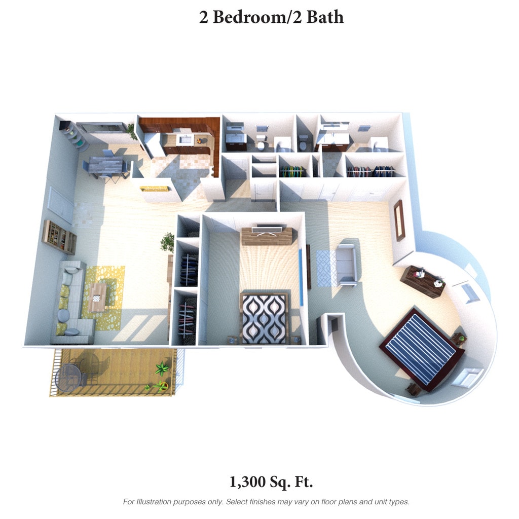 Modelo de apartamento: 2 Bedroom 2 Bath B$9042 Dormitorios, 2 Baños, 1300 sq ftNo Disponible![]()