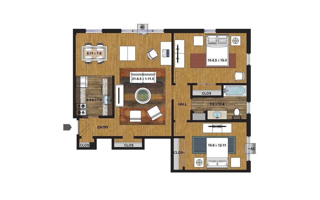 Modelo de apartamento: 2 BedroomDesde $1,2712 Dormitorios, 1 Baño, 900 sq ftDisponible Ahora![]()