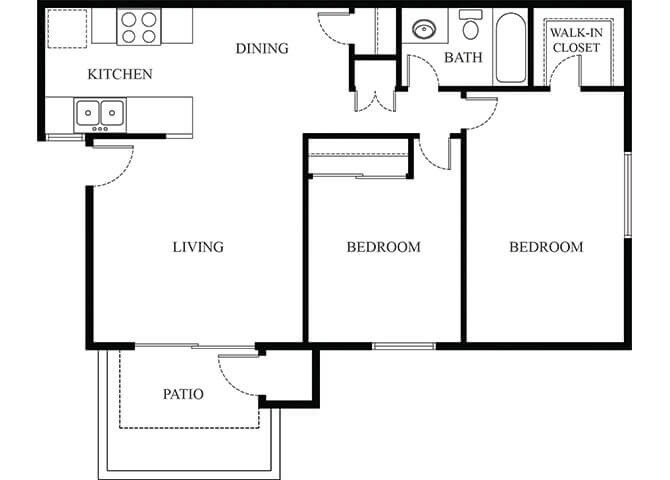 2 Dormitorios, 2 Baños, 934 pies²El más grandeEsta opción tiene las unidades más grandes para este modeloGalería del Modelo