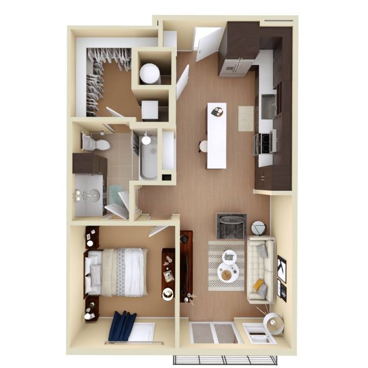 1 Dormitorio, 1 Baño, 724 pies²Disponible AhoraGalería del Modelo