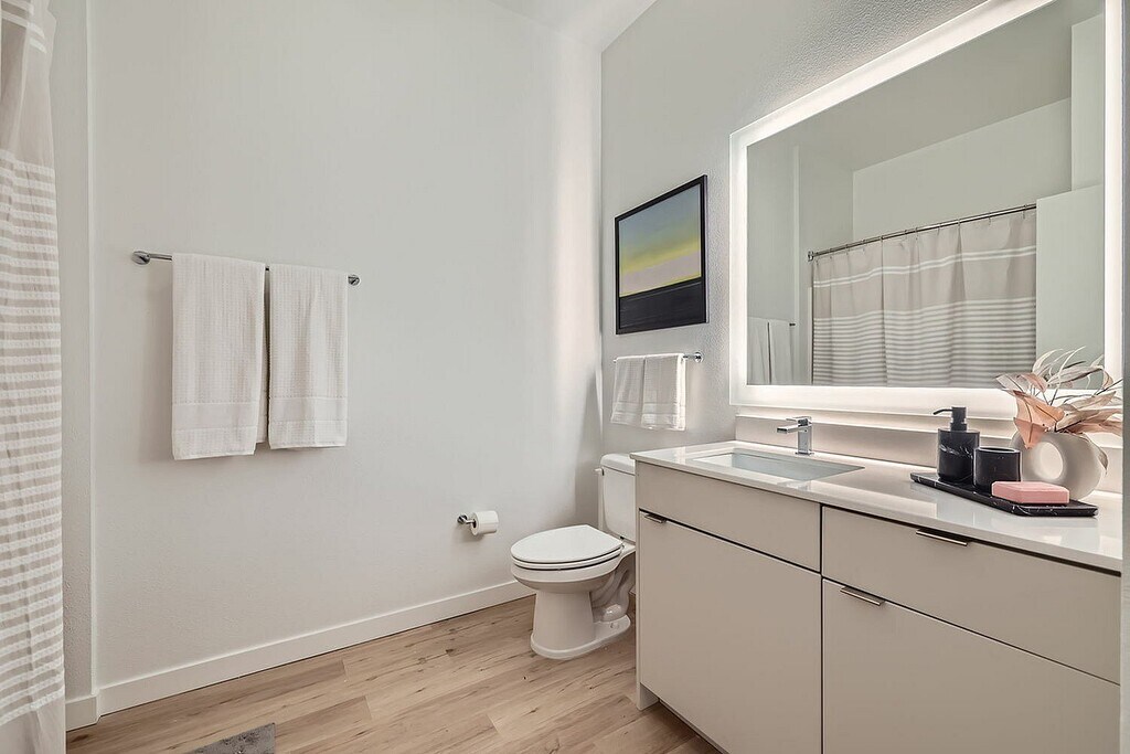 - Prepárese con iluminación mejorada y accesorios de tocador de diseño.