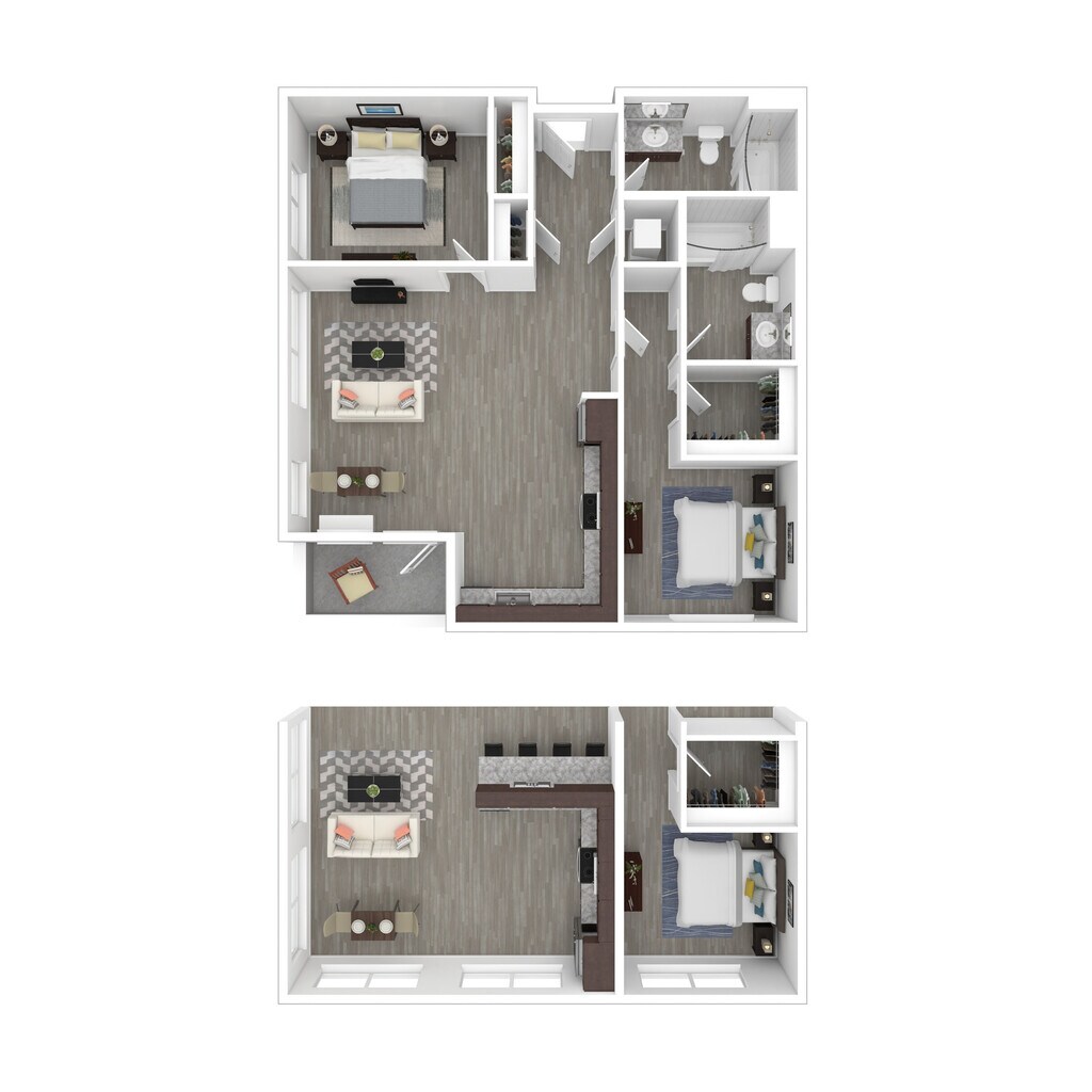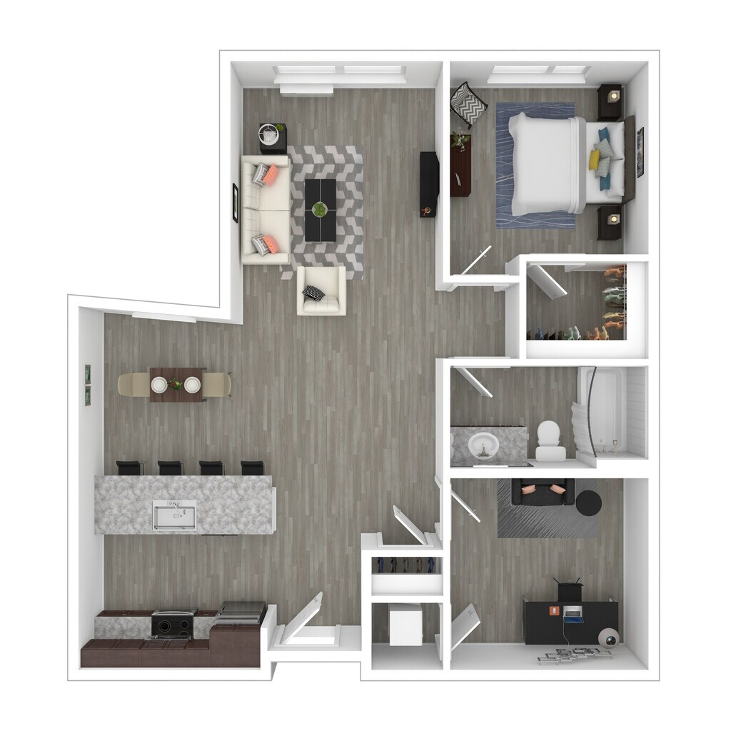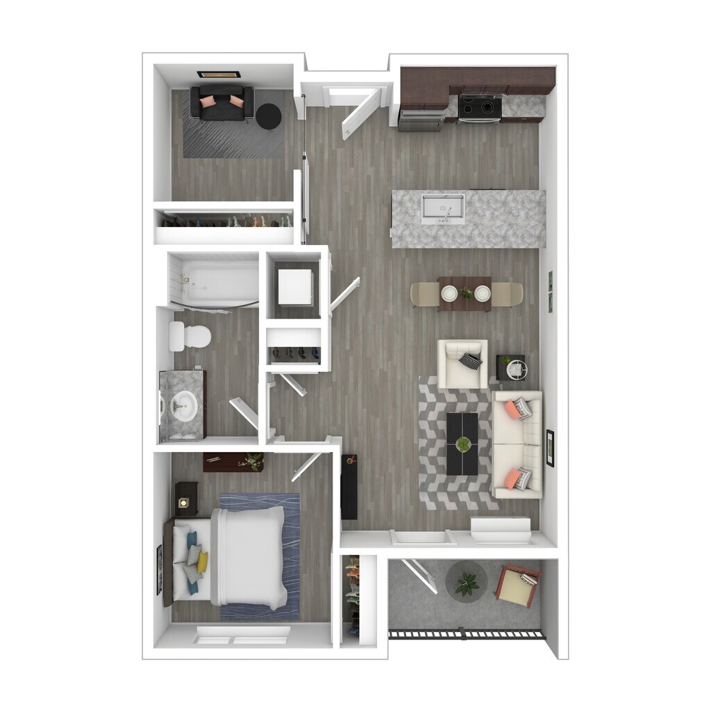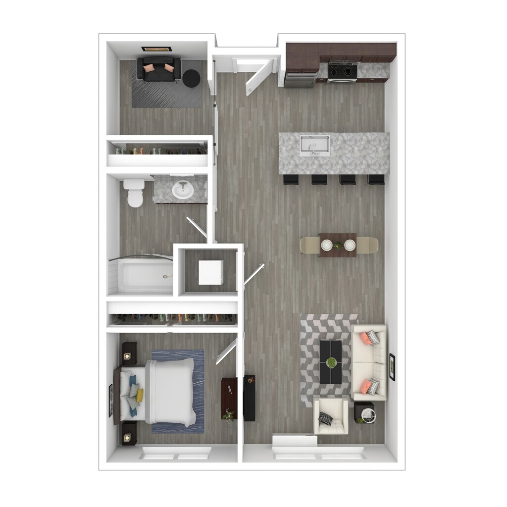 1 Dormitorio, 1 Baño, 690 pies²Disponible AhoraGalería del Modelo