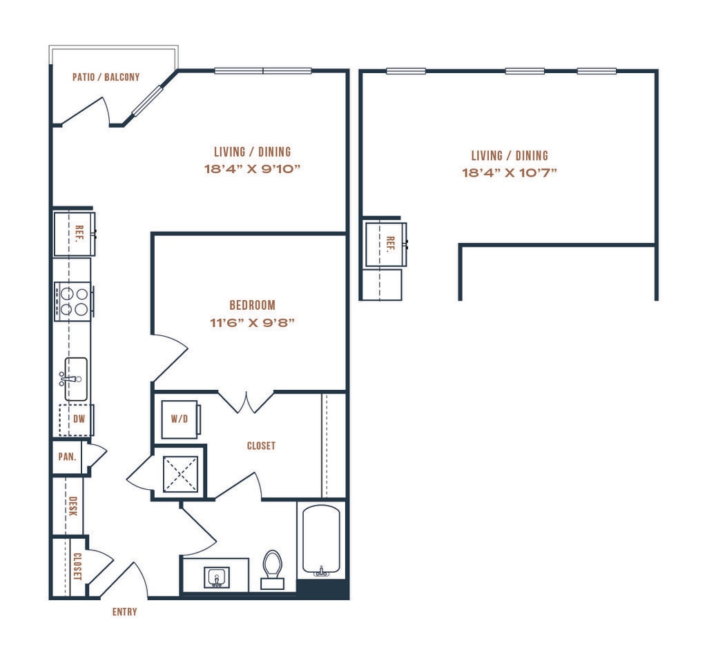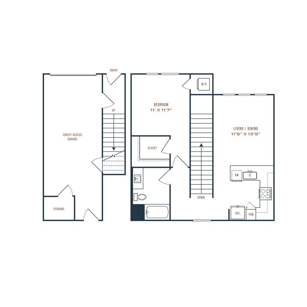 1 Dormitorio, 1 Baño, 770-805 pies²Disponible AhoraGalería del Modelo