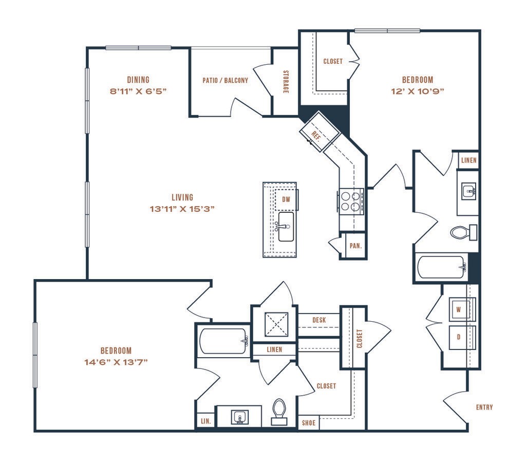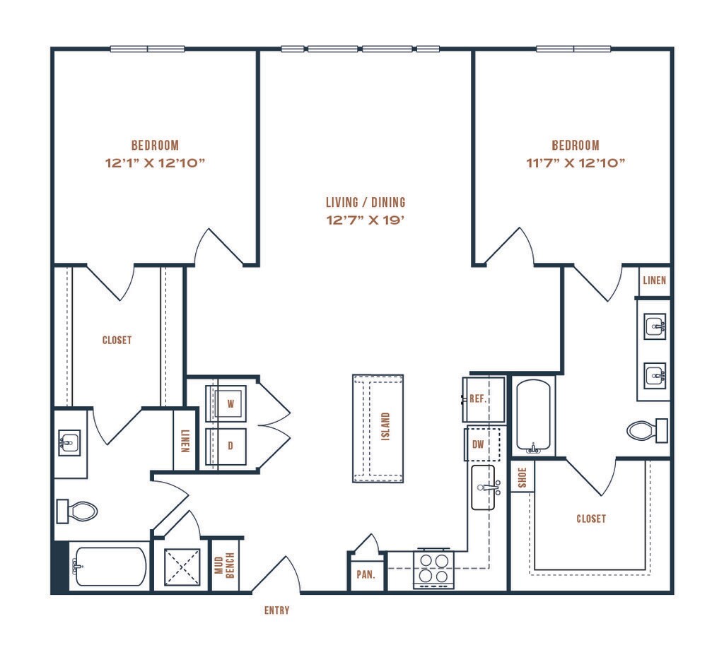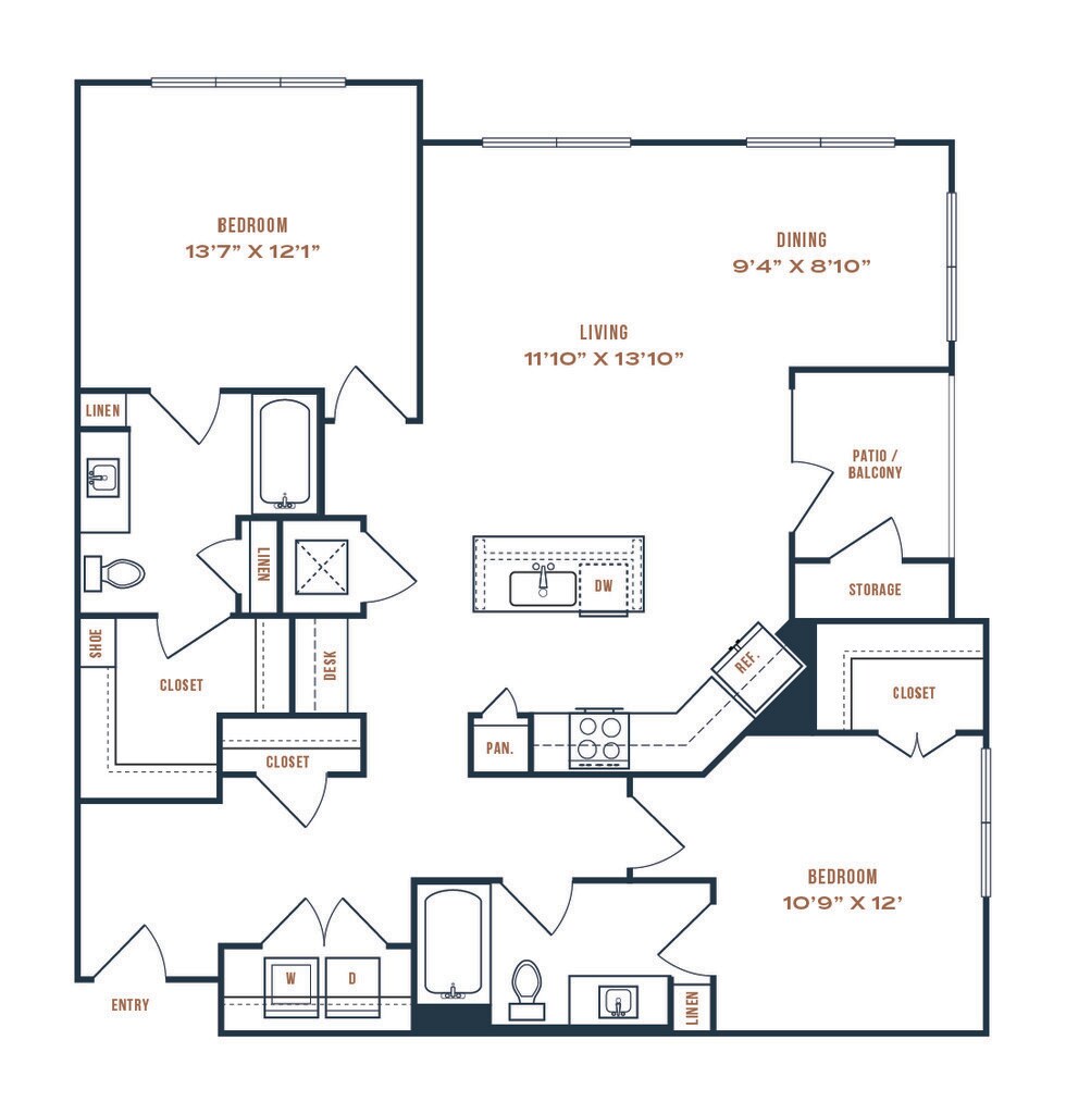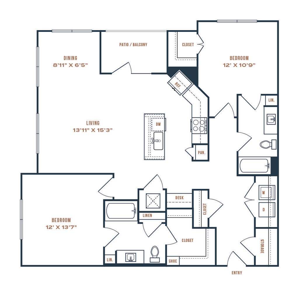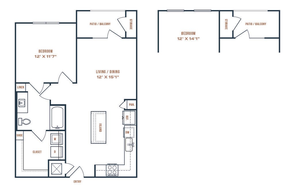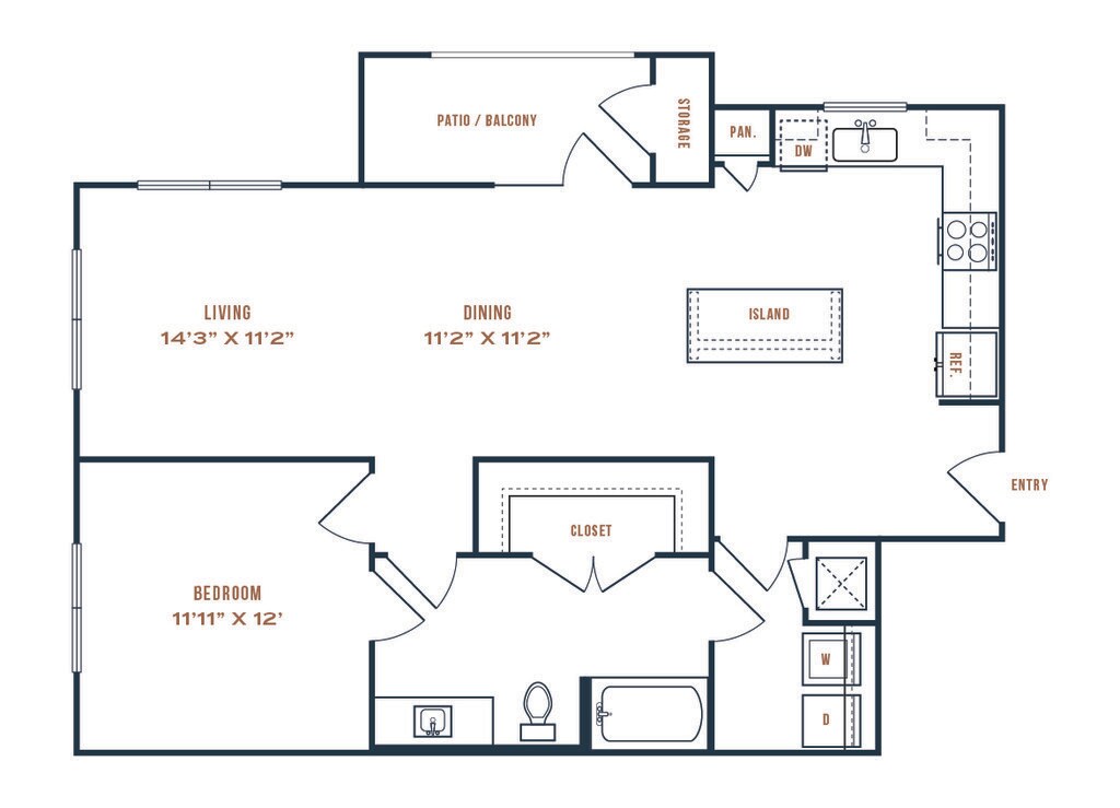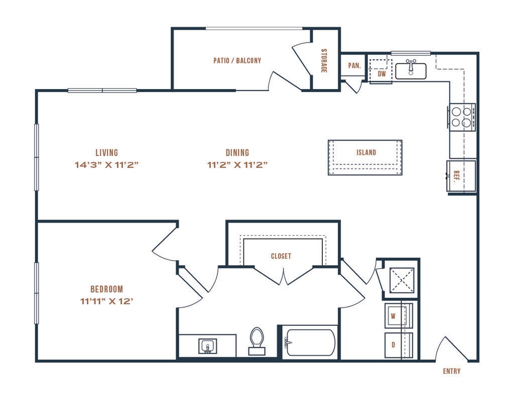 Modelo de apartamento: CarriageDesde $1,7991 Dormitorio, 1 Baño, 795 sq ftDisponible Ahora![]()