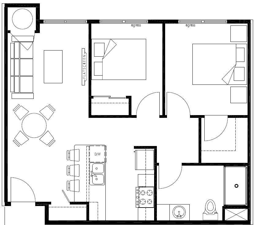 2 Dormitorios, 1 Baño, 752 pies²Disponible AhoraGalería del Modelo