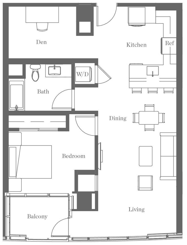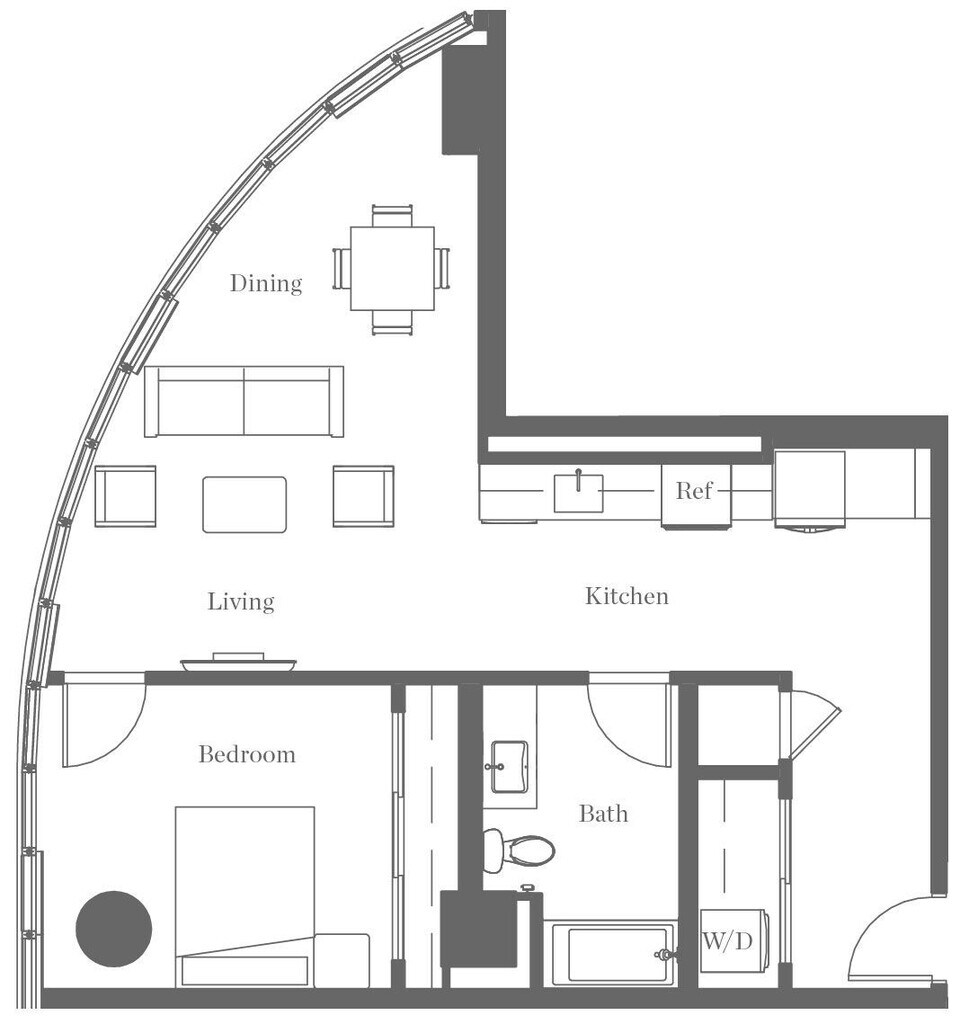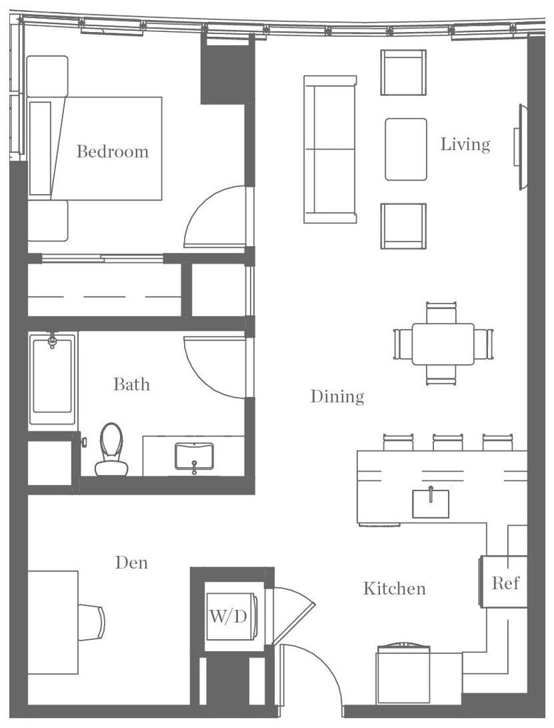 Estudio, 1 Baño, 684 pies²Disponible AhoraGalería del Modelo
