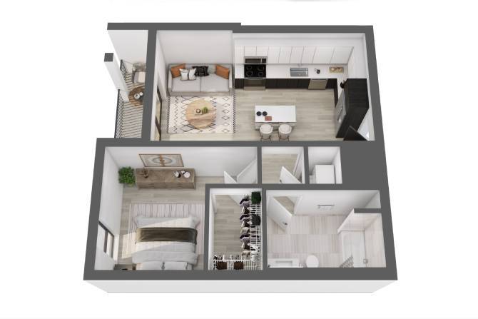 1 Dormitorio, 1 Baño, 647 pies²Disponible AhoraGalería del Modelo