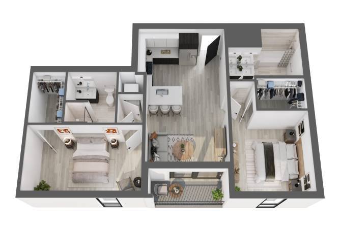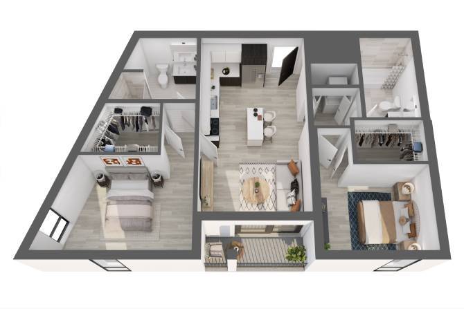 Modelo de apartamento: B3Desde $2,4892 Dormitorios, 2 Baños, 977 sq ftDisponible Ahora![]()