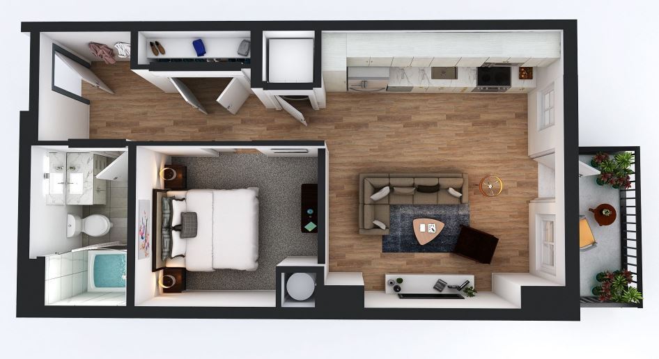 - Casas tipo estudio, de 1 y 2 habitaciones completamente amuebladas