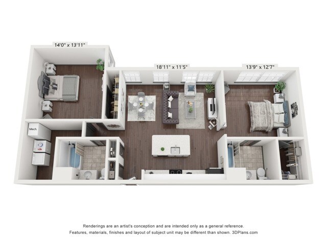 Modelo de apartamento: Town Center IDesde $1,5051 Dormitorio, 1 Baño, 682-745 sq ftDisponible Ahora![]()