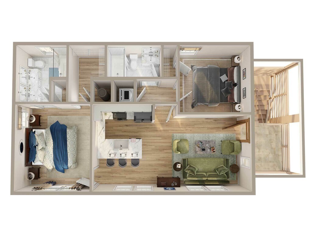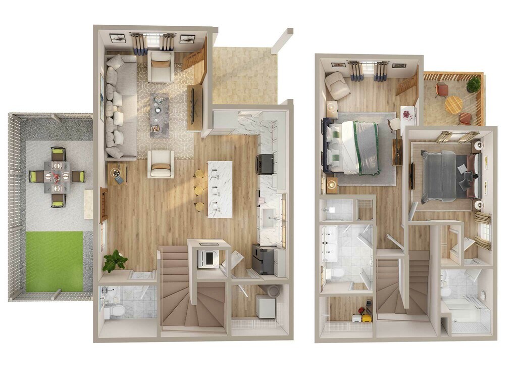 Modelo de apartamento: Bliss- Upper (SD1U)Desde $1,3991 Dormitorio, 1 Baño, 824 sq ftDisponible Ahora![]()
