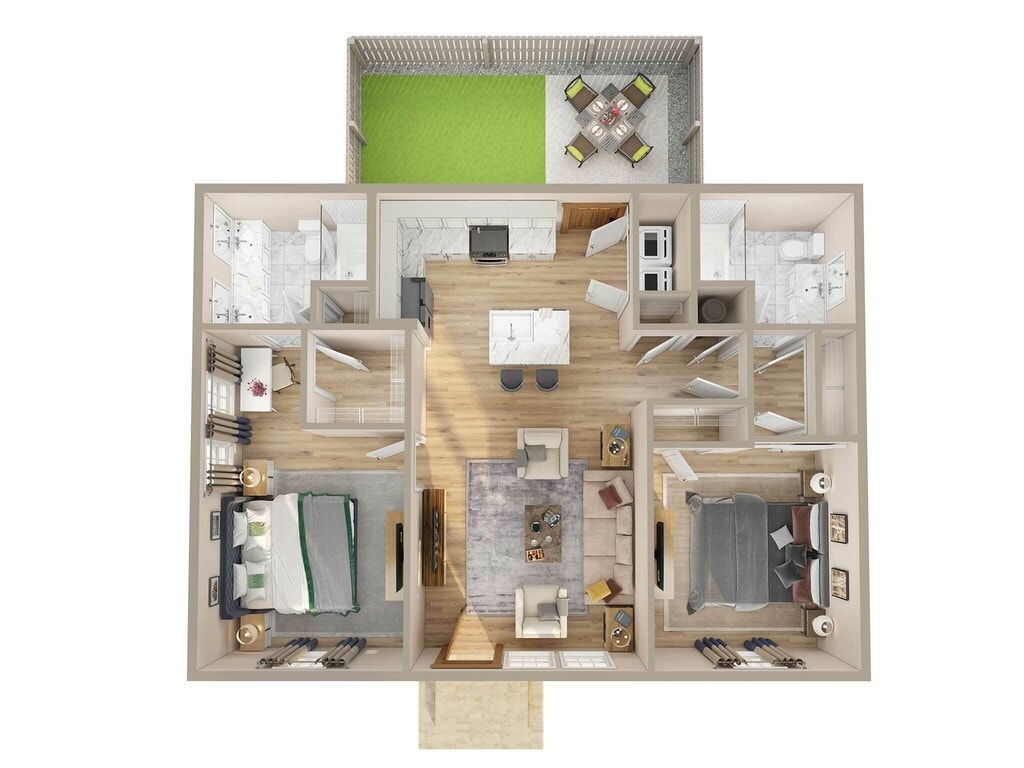 Modelo de apartamento: Grace - (B1)Desde $1,6942 Dormitorios, 2 Baños, 912 sq ftDisponible Ahora![]()