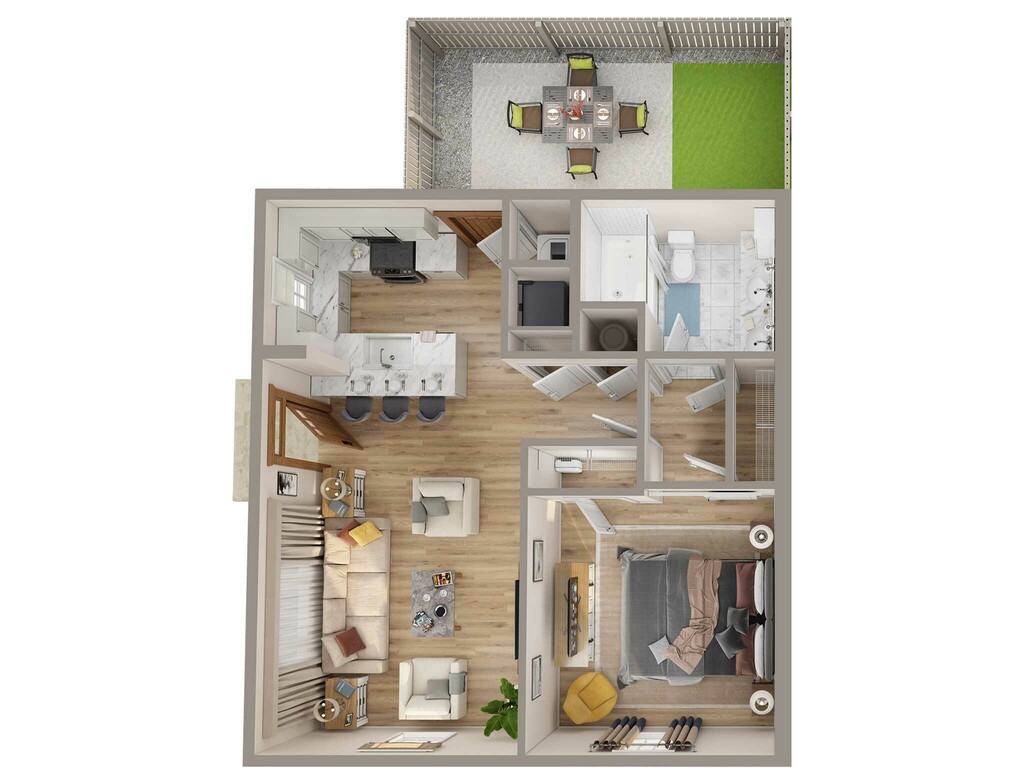 Modelo de apartamento: Joy - (A1A)Desde $1,3691 Dormitorio, 1 Baño, 728 sq ftDisponible Ahora![]()