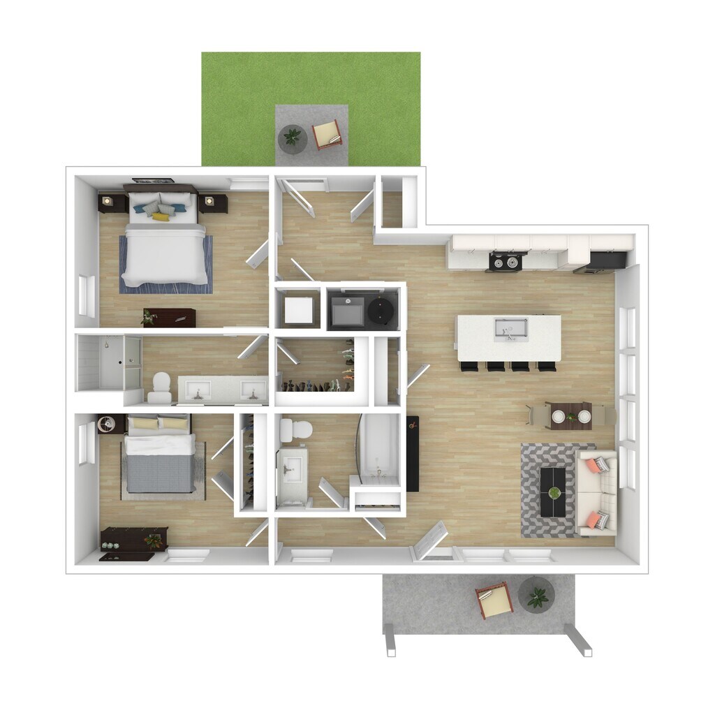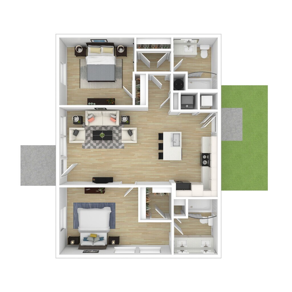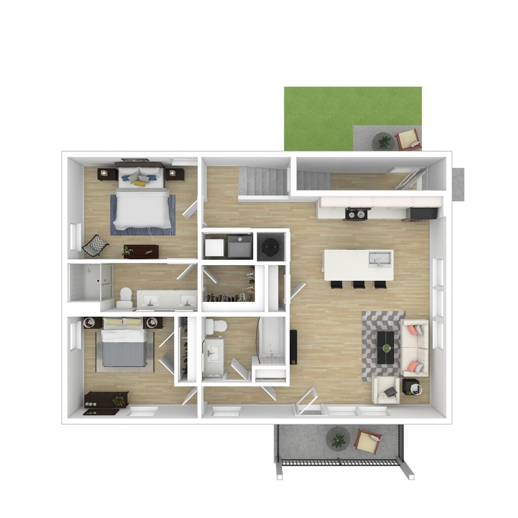 Modelo de apartamento: 2 BR Stacked Duplex- GroundDesde $2,0992 Dormitorios, 2 Baños, 1053 sq ftDisponible Ahora![]()