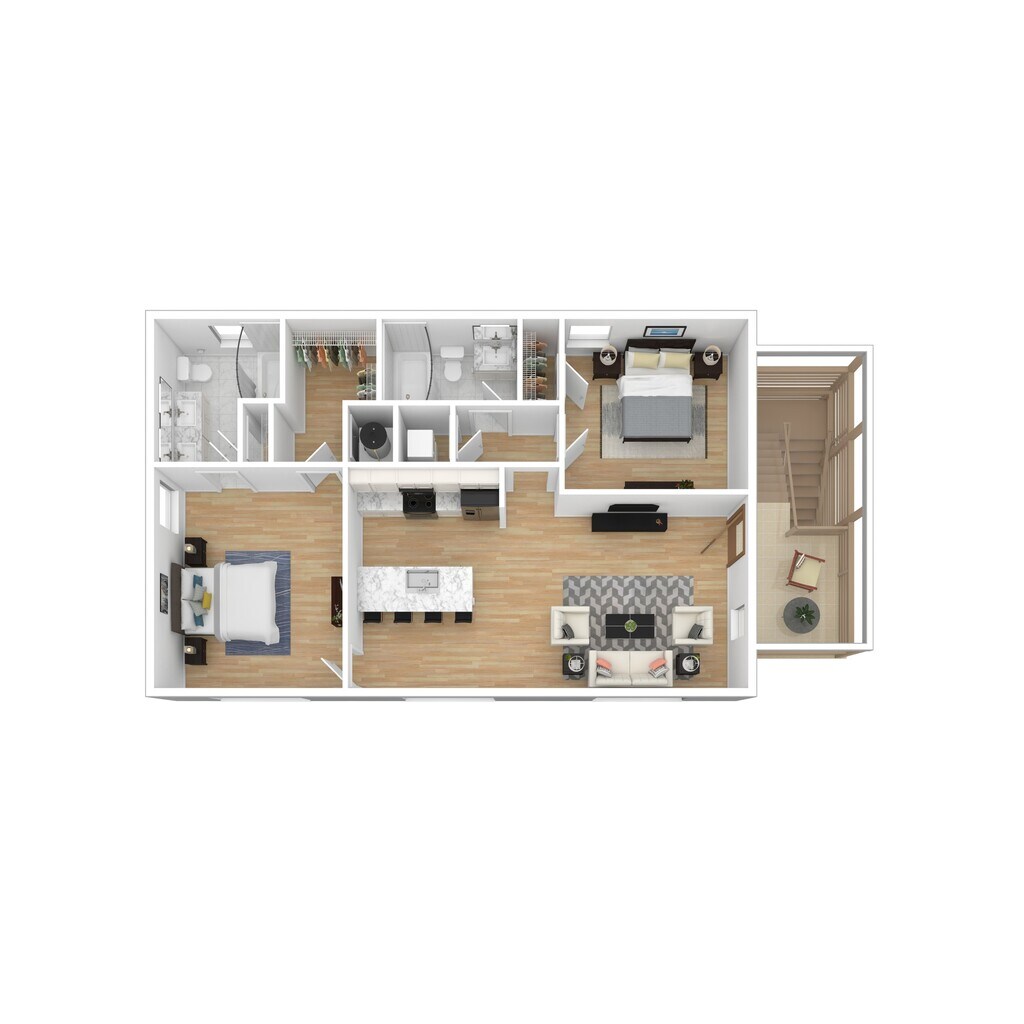 Modelo de apartamento: 1br Duplex$1,7291 Dormitorio, 1 Baño, 728 sq ftDisponible Ahora![]()