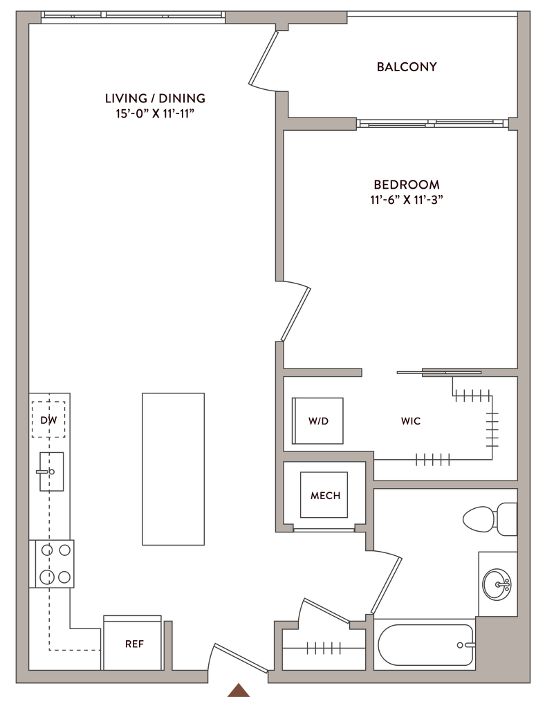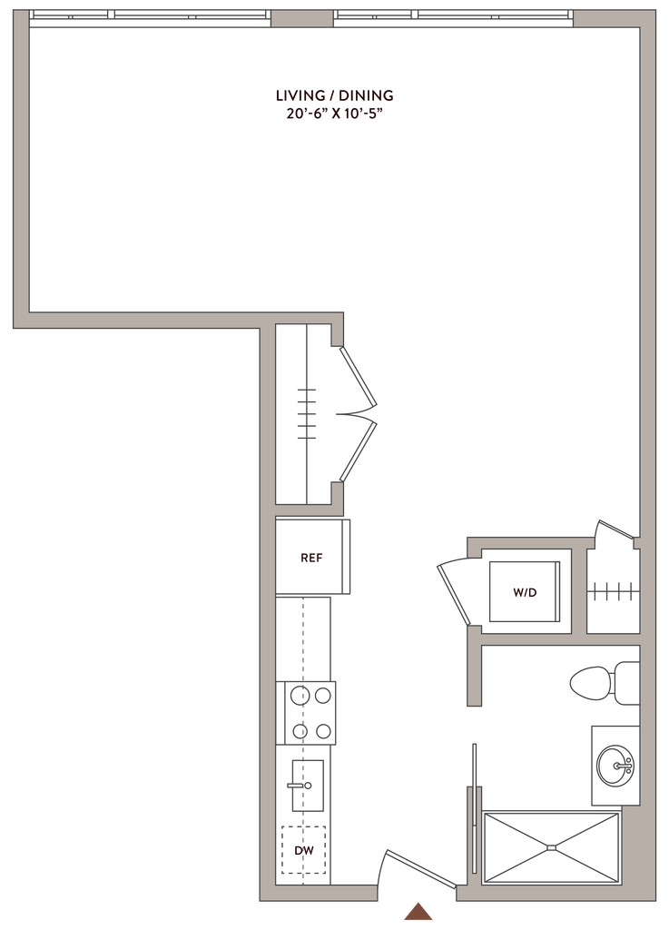 S3 - Plano 1 Unidad de apartamento: 308Modelo de apartamento: S3$2,025Estudio, 1 Baño, 490 sq ftDisponible AhoraPlano: SD7