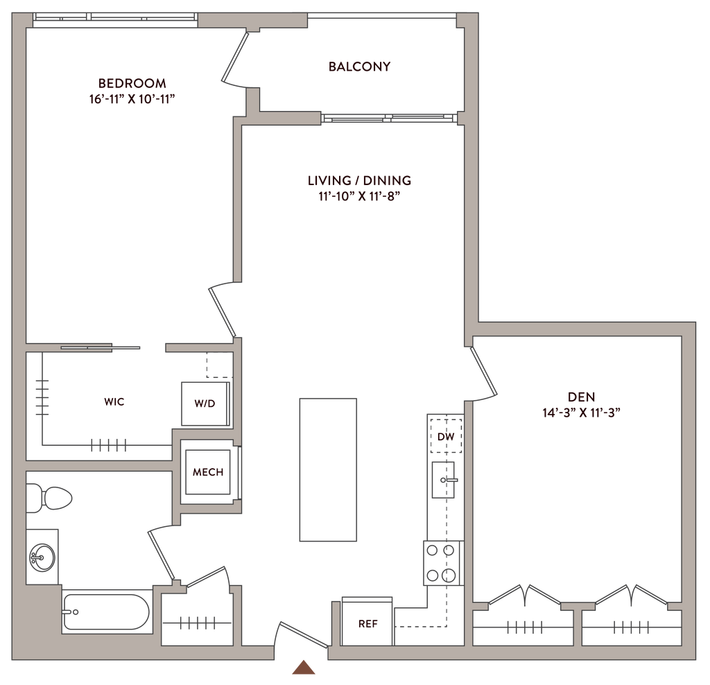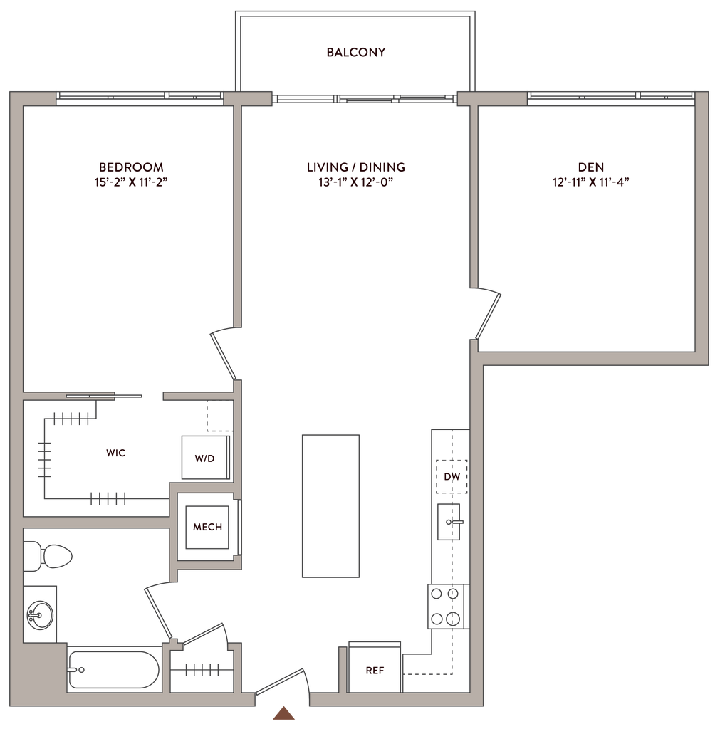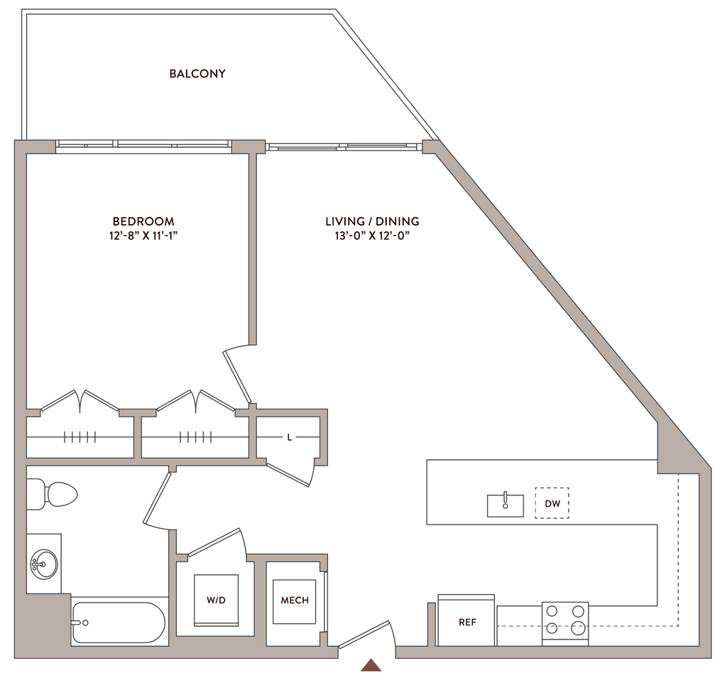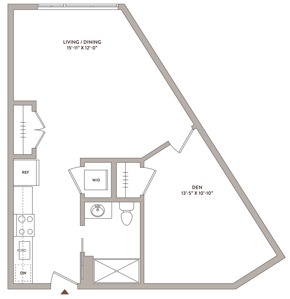 SD8 - Plano 1 Unidad de apartamento: 613Modelo de apartamento: SD8$2,375Estudio, 1 Baño, 543 sq ftDisponible AhoraPlano: S4