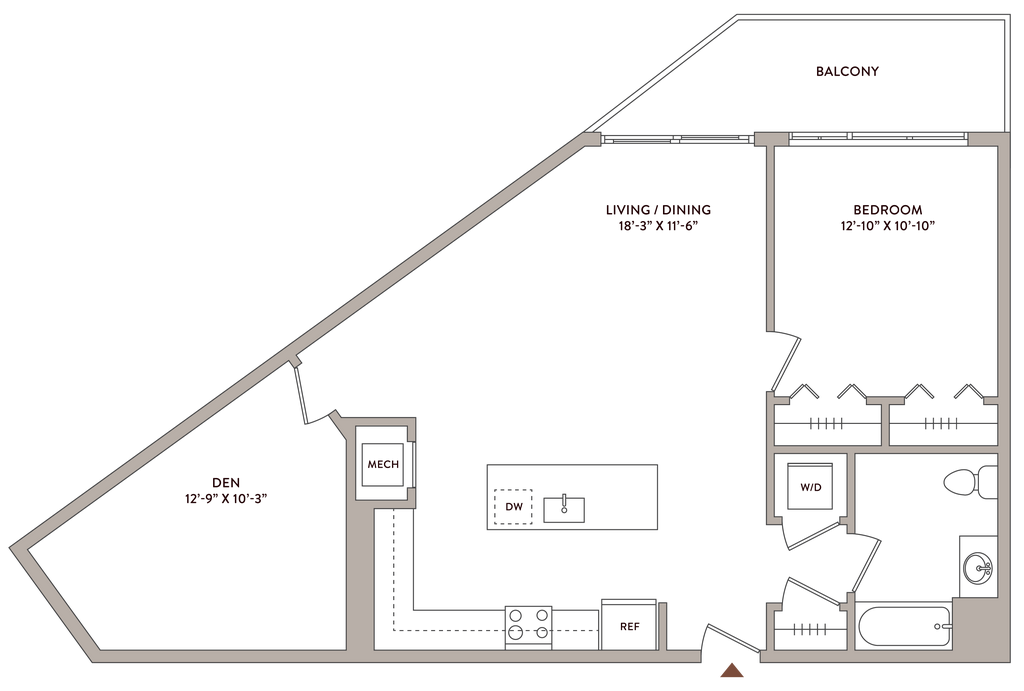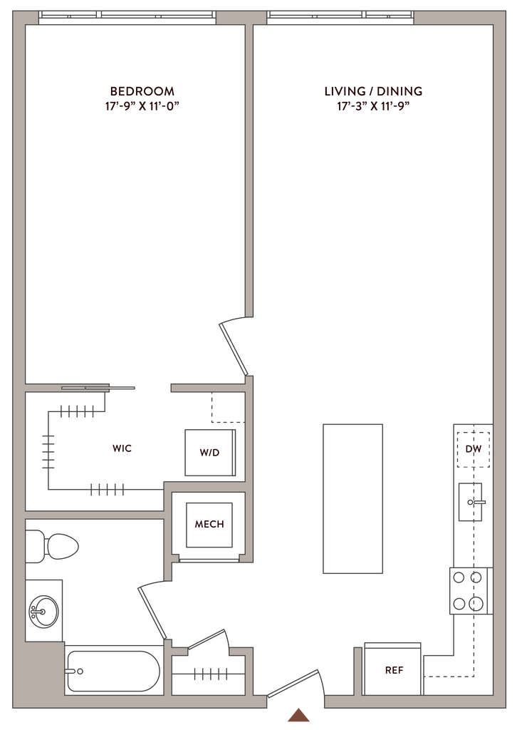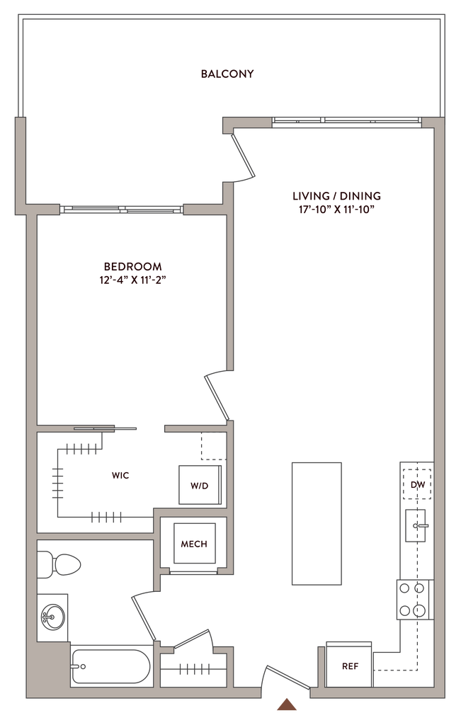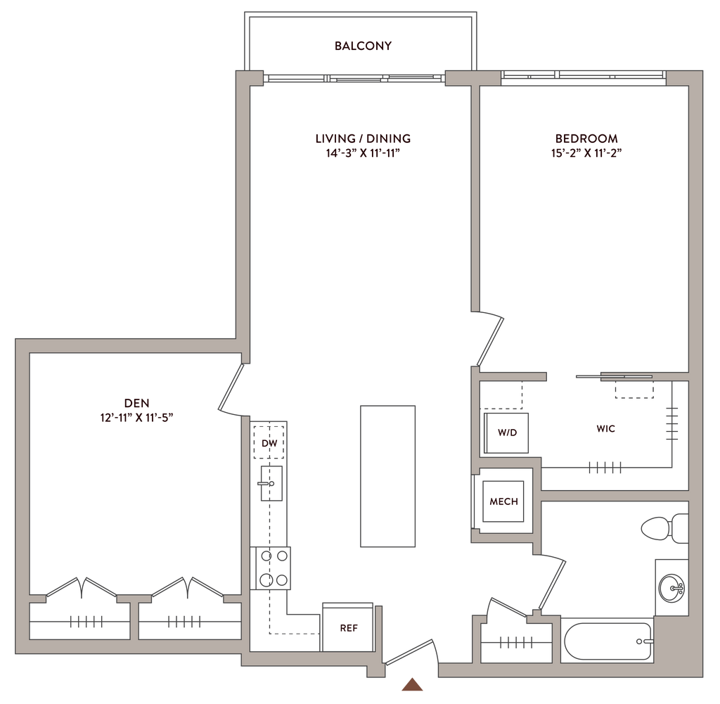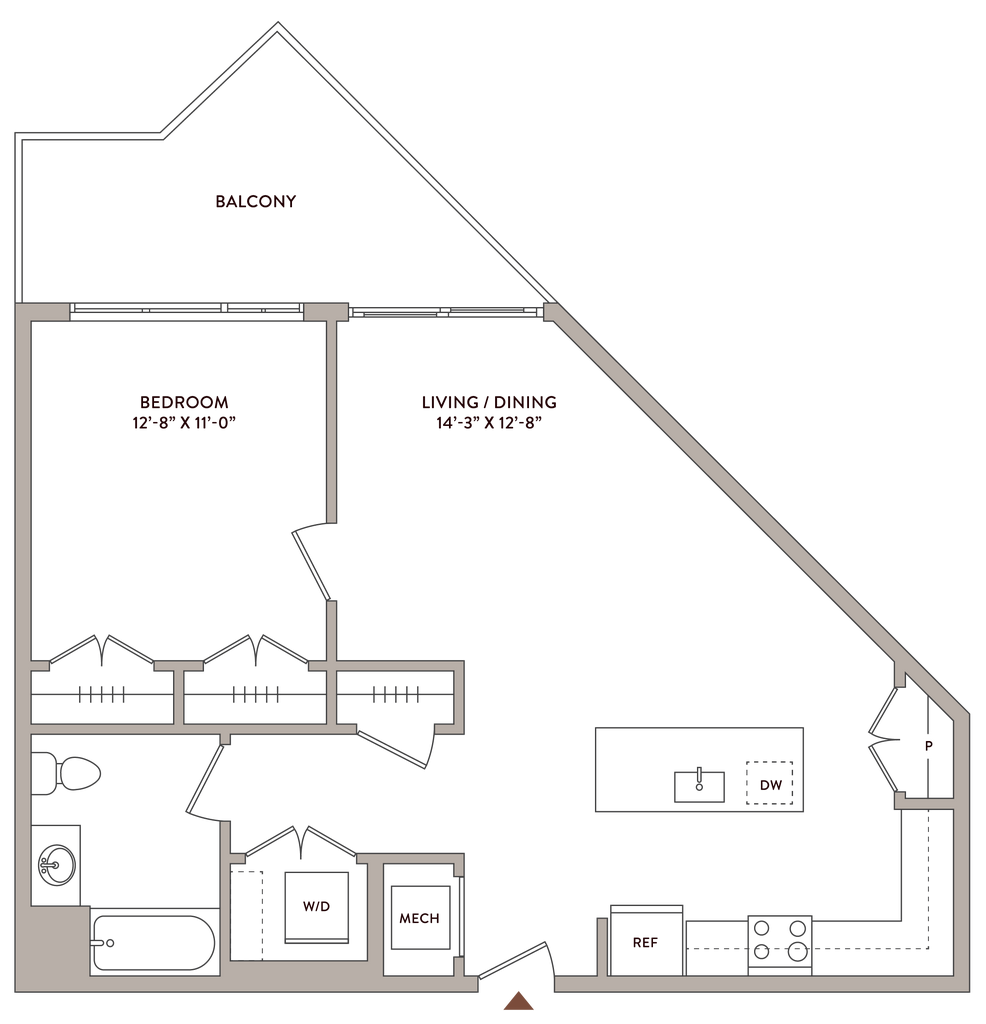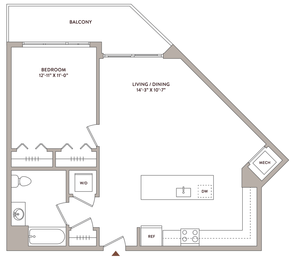 SD8 - Plano 1 Unidad de apartamento: 613Modelo de apartamento: SD8$2,375Estudio, 1 Baño, 543 sq ftDisponible AhoraPlano: S4