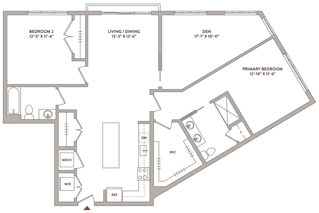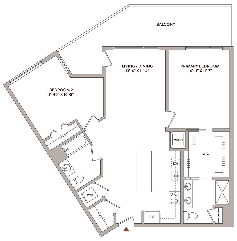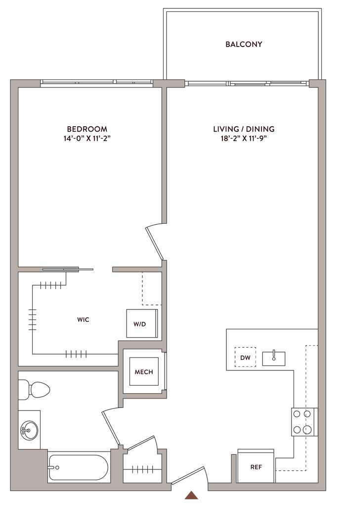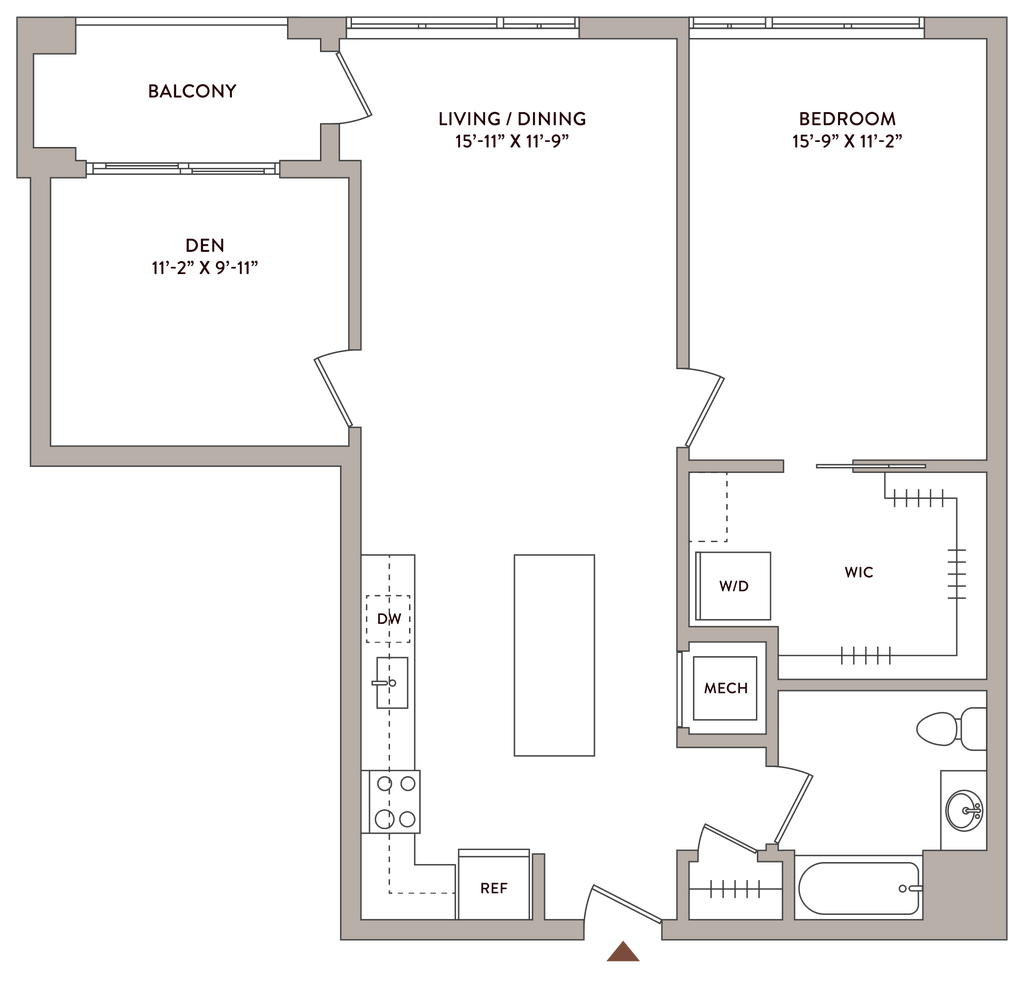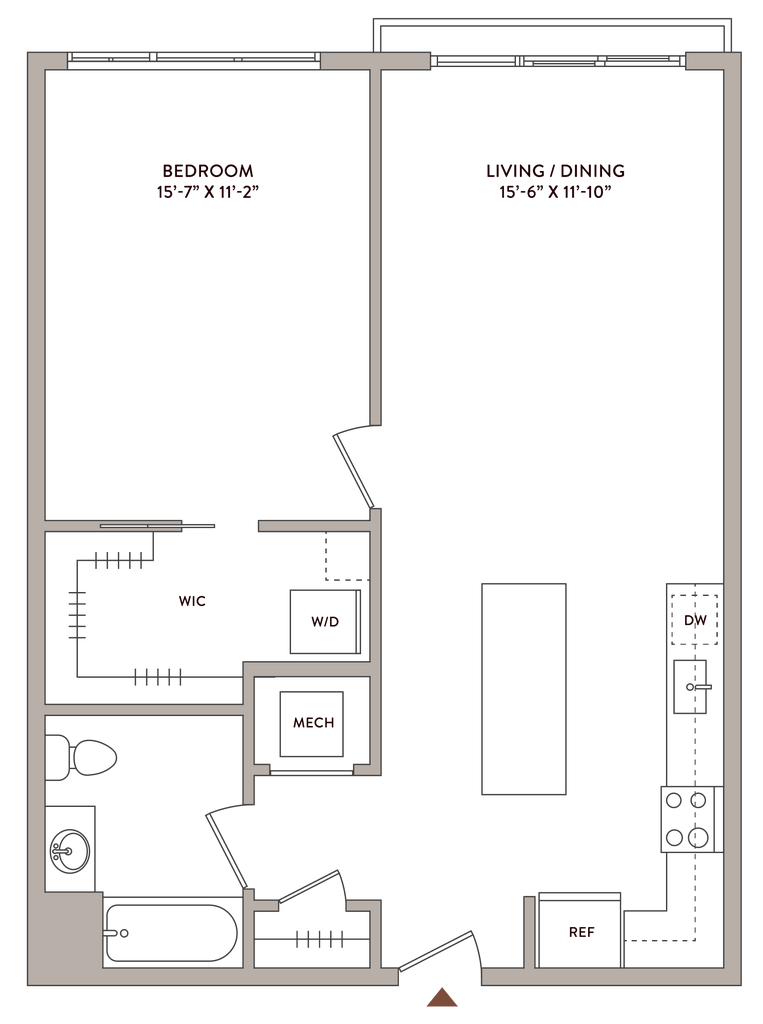 SD8 - Plano 1 Unidad de apartamento: 613Modelo de apartamento: SD8$2,375Estudio, 1 Baño, 543 sq ftDisponible AhoraPlano: S4