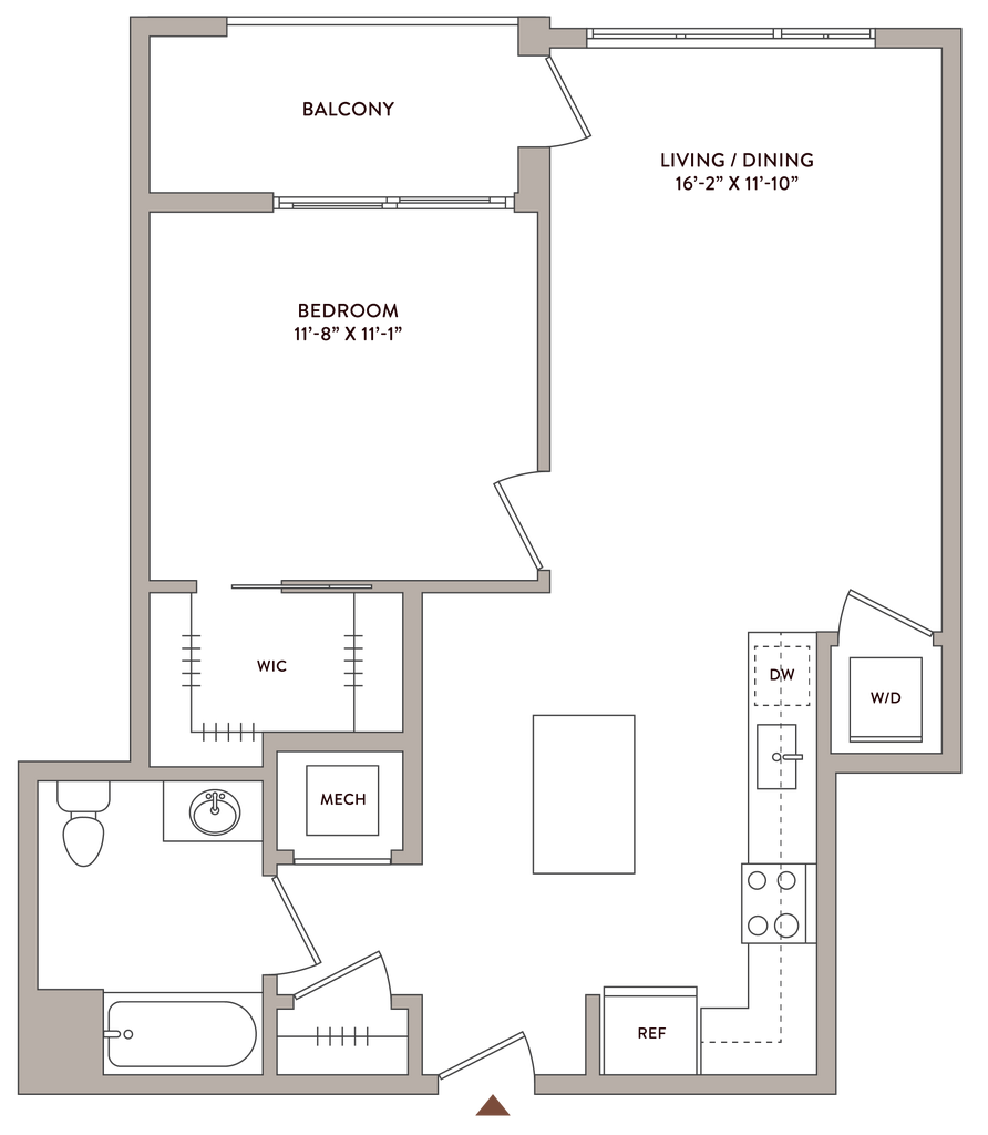Estudio, 1 Baño, 543 pies²Disponible AhoraGalería del Modelo