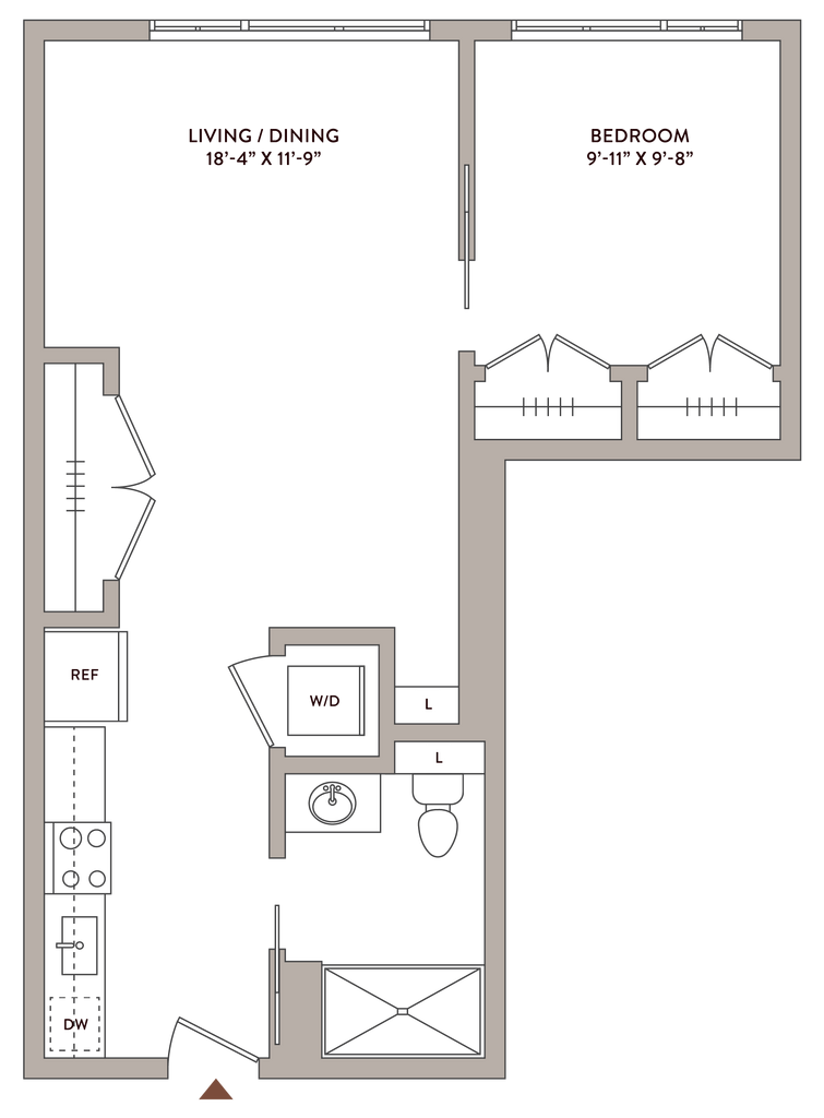 Modelo de apartamento: S4Desde $2,000Estudio, 1 Baño, 490 sq ftDisponible December 1, 2025![]()
