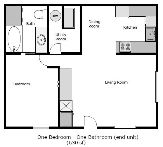 1 Dormitorio, 1 Baño, 605 pies²Disponible AhoraGalería del Modelo