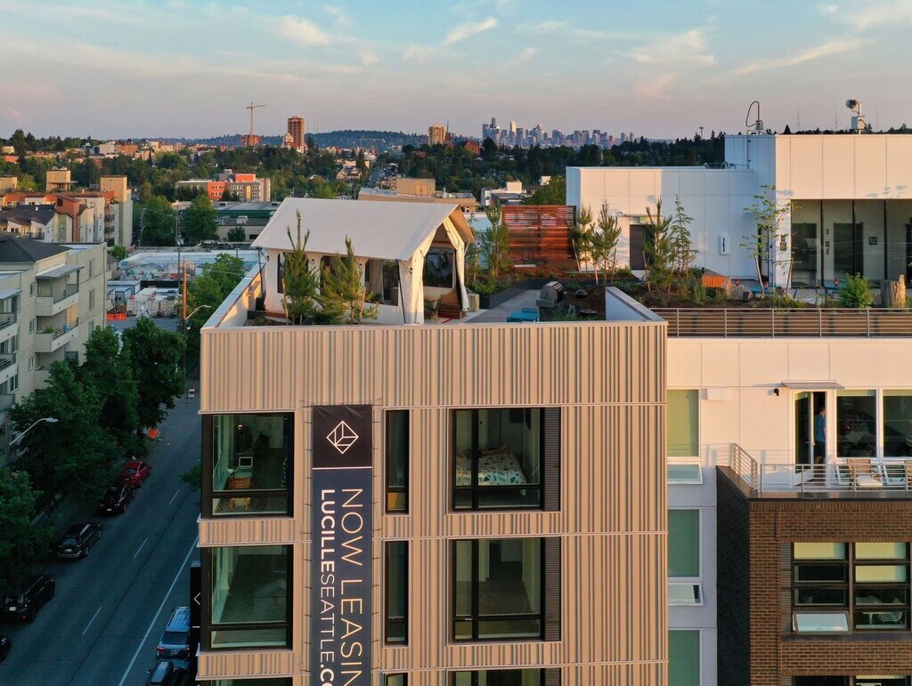 Bienvenido a una nueva perspectiva de la vida en apartamento. Donde las líneas modernas y las generosas comodidades se leen como características de un hogar hecho a la medida, con todo, desde aire acondicionado y cerraduras inteligentes, hasta accesorios de iluminación regulables y estanterías empotradas. A nivel de la calle, experimenta un vestíbulo al aire libre, una tostadora de café local y un espacio de trabajo conjunto dedicado con paredes retráctiles para traer el exterior hacia adentro. Lucille seleccionó el floreciente vecindario de Roosevelt por su inherente accesibilidad para peatones: restaurantes, Whole Foods y el centro al aire libre del cercano Green Lake. Disfrutarás de un rápido acceso a todo con la cercana I-5 y la estación del tren ligero a menos de dos cuadras de distancia. Puedes tenerlo todo, además de vistas a la montaña, el agua y la ciudad, desde la terraza de la azotea de Lucille. ¡Conoce Lucille en persona! - ¡Ahora abierto!