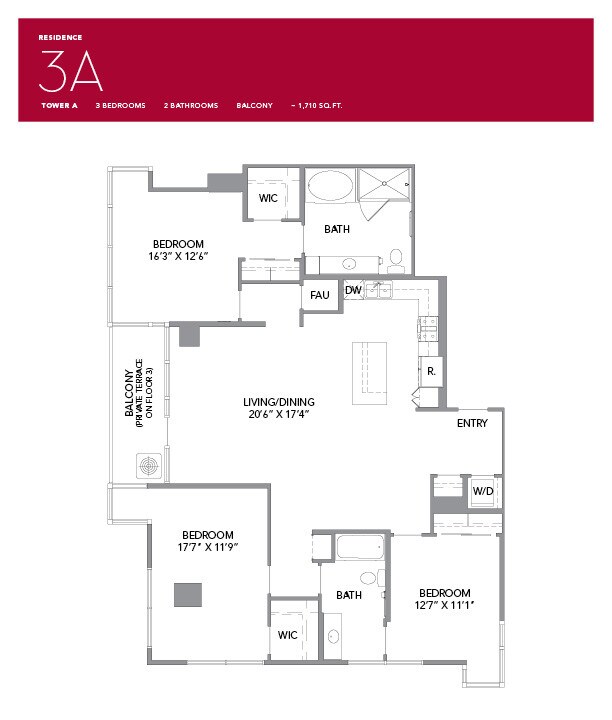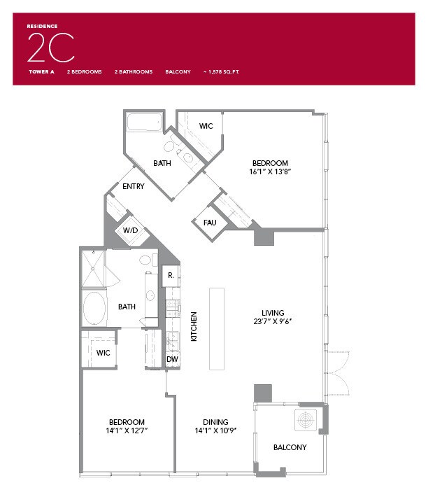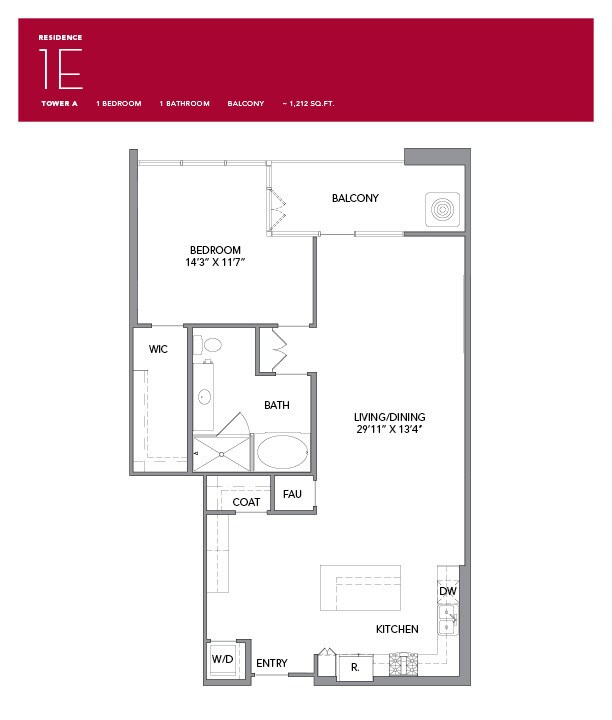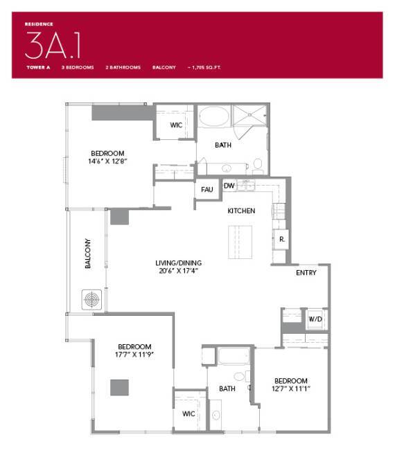 1C.1 - Plano 1 Unidad de apartamento: 1703Modelo de apartamento: 1C.1$4,3601 Dormitorio, 1 Baño, 887 sq ftDisponible December 14, 2025Plano: 1A