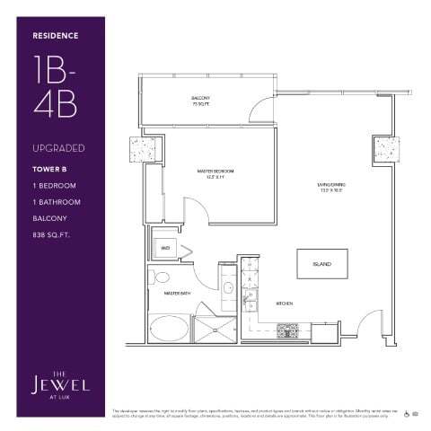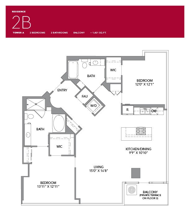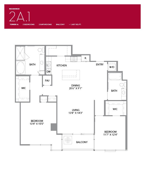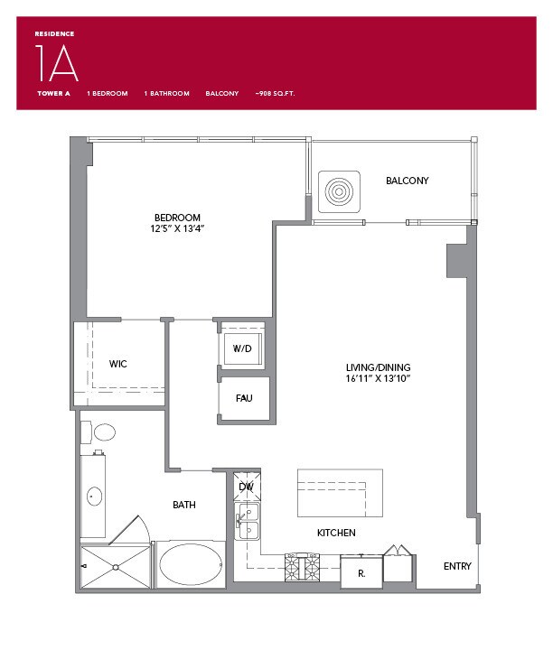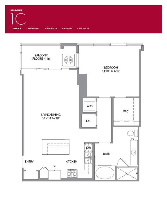 1A - Plano 2 Unidad de apartamento: 1501Modelo de apartamento: 1A$4,7851 Dormitorio, 1 Baño, 908 sq ftDisponible December 15, 2025Plano: 1B