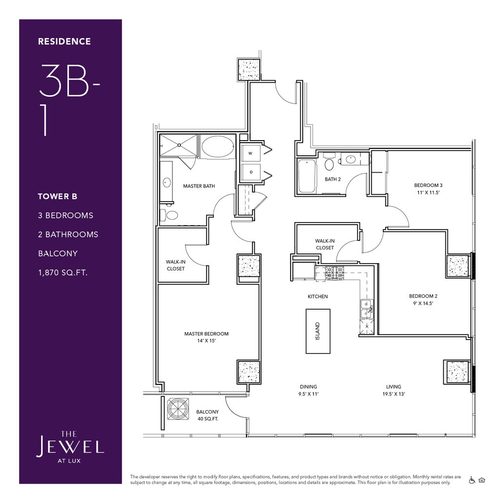 1B-1 - Plano 2 Unidad de apartamento: 1704Modelo de apartamento: 1B-1$5,0251 Dormitorio, 1 Baño, 1260 sq ftDisponible Ahora1C.1