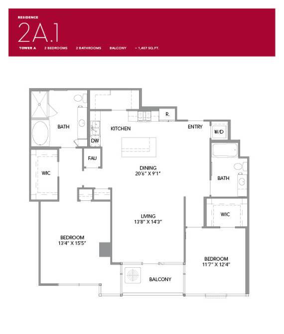 Modelo de apartamento: 1A.1Desde $4,9501 Dormitorio, 1 Baño, 876 sq ftDisponible Ahora![]()