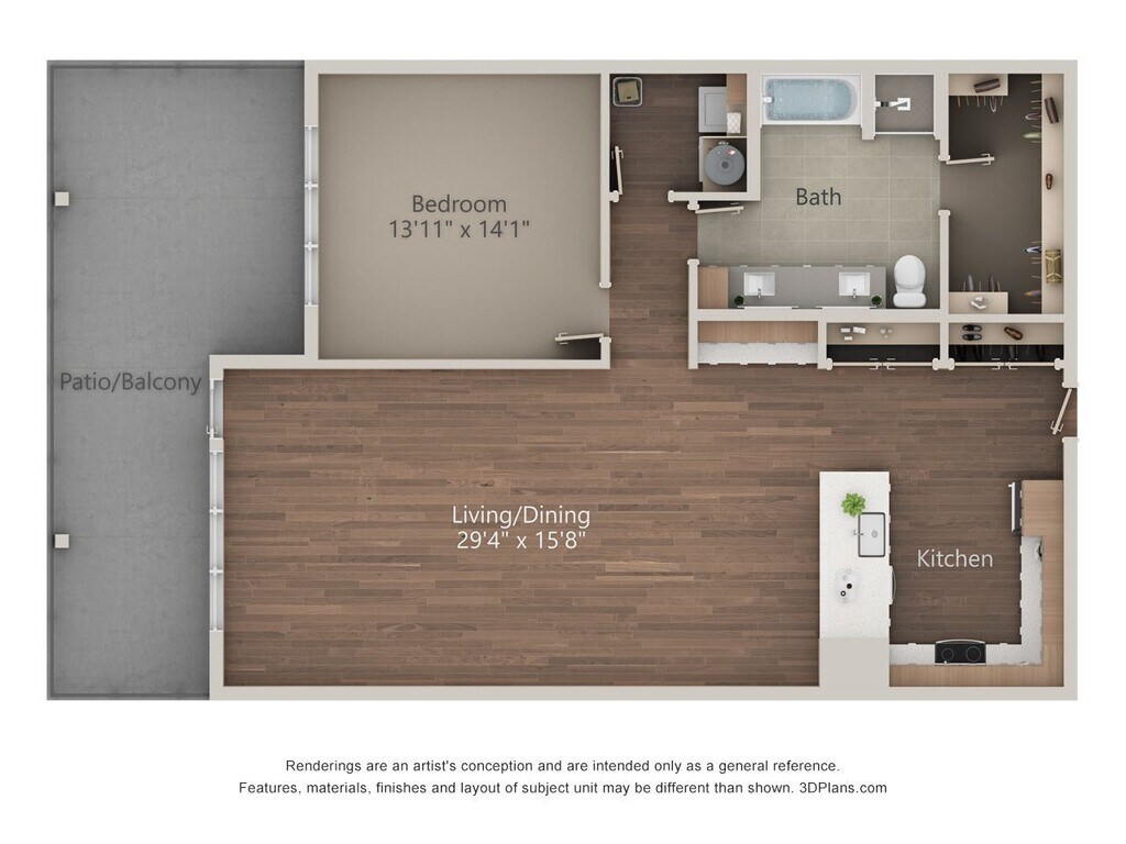 1 Dormitorio, 1 Baño, 721 pies²Disponible AhoraGalería del Modelo