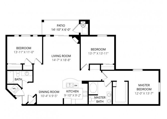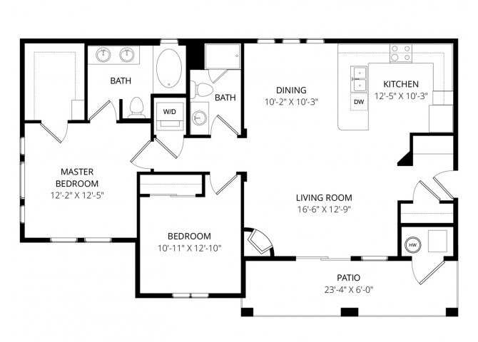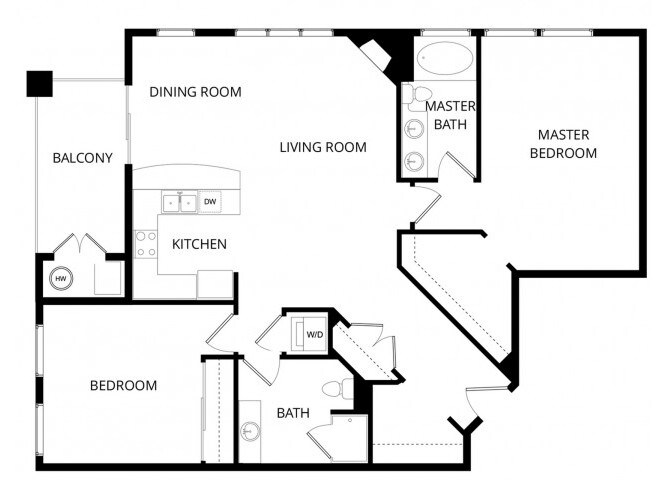 1 Dormitorio, 1 Baño, 975 pies²El más grandeEsta opción tiene las unidades más grandes para este modeloGalería del Modelo