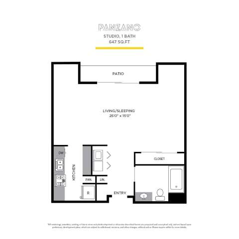 Modelo de apartamento: PanzanoDesde $2,600Estudio, 1 Baño, 647 sq ftDisponible Ahora![]()