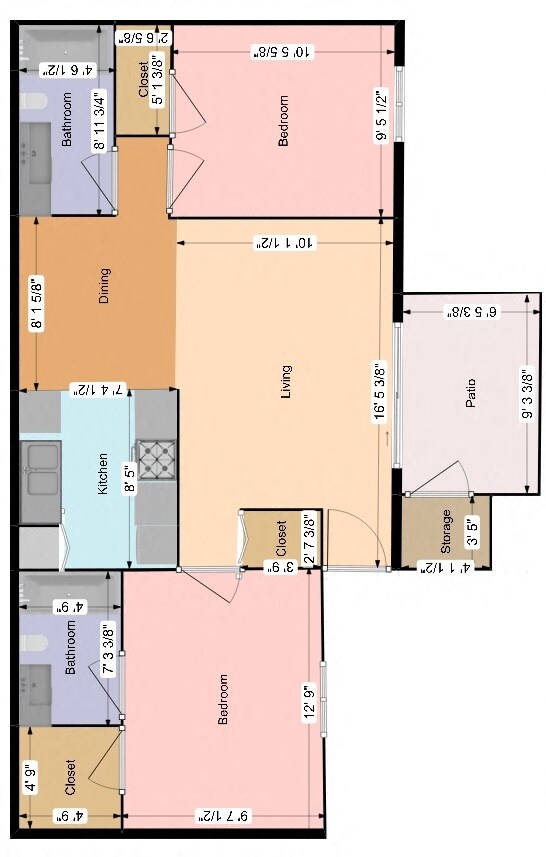 2 Dormitorios, 1 Baño, 669 pies²Disponible AhoraGalería del Modelo
