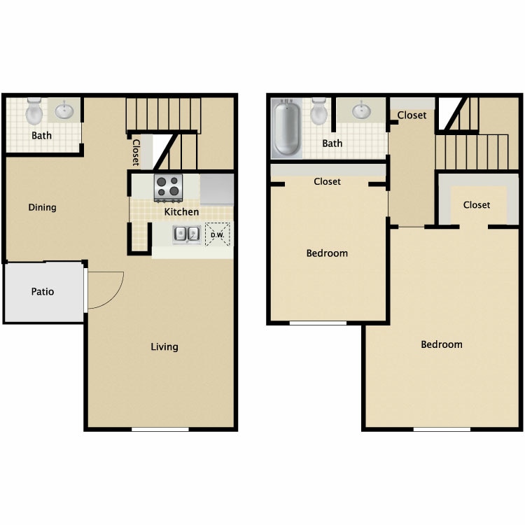 2 Dormitorios, 2 Baños, 990 pies²Galería del Modelo