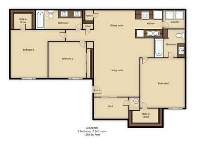 3 Dormitorios, 2 Baños, 1256 pies²Galería del Modelo