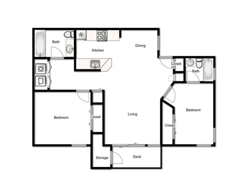 3x2-1100 - Plano 9 Unidad de apartamento: 124Modelo de apartamento: 3x2-11003 Dormitorios, 2 Baños, 1100 sq ftDisponible Ahora