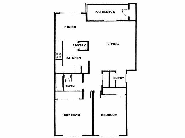 2 Dormitorios, 1 Baño, 950 pies²Disponible AhoraGalería del Modelo