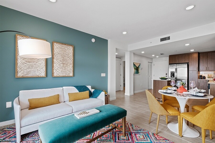 Los apartamentos de lujo de LaVida en Miami, Florida cuentan con amplios planos de planta de una, dos y tres habitaciones. Nuestras casas incluyen características premium como pisos de porcelana, encimeras de cuarzo premium, cocinas contemporáneas, puertos de carga USB y patios/balcones grandes. Los residentes también disfrutan de una piscina estilo centro turístico con cabañas, una casa club de dos pisos frente al lago, un salón al aire libre, vistas al lago Mahar y llevar a tus amigos peludos al parque para perros en el lugar.