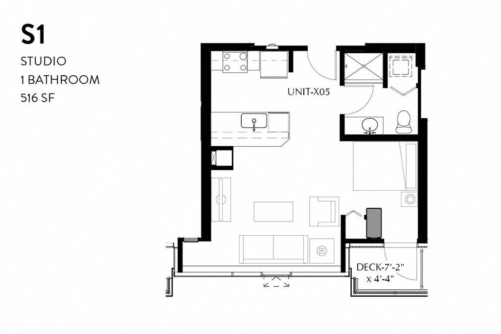 Estudio, 1 Baño, 516 pies²Disponible AhoraGalería del Modelo