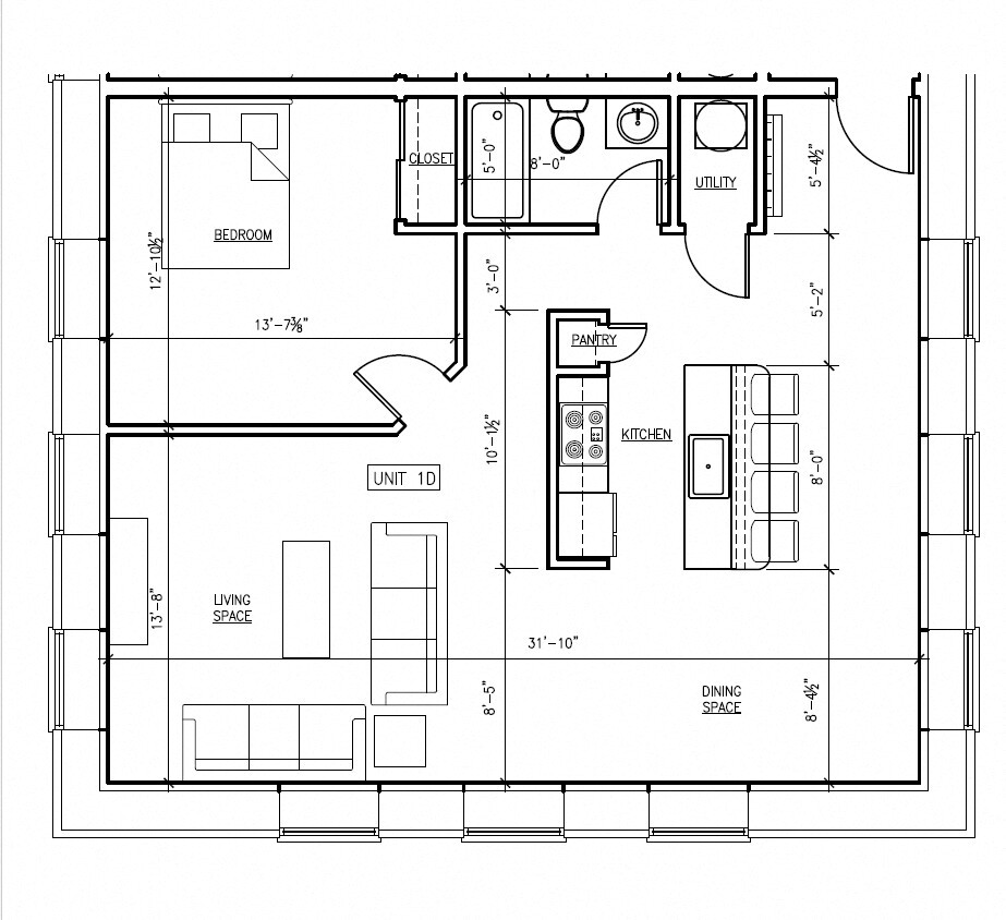 1 Dormitorio, 1 Baño, 722 pies²Galería del Modelo