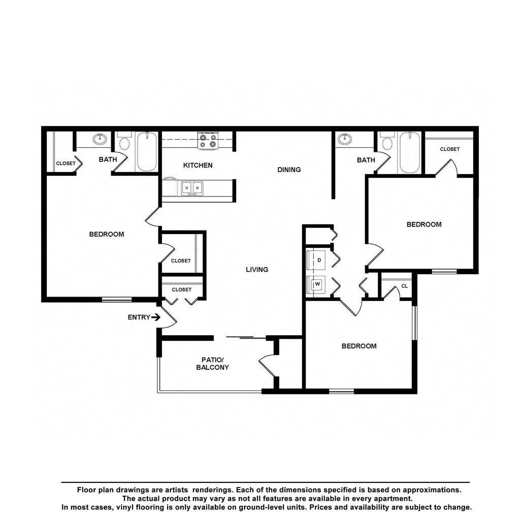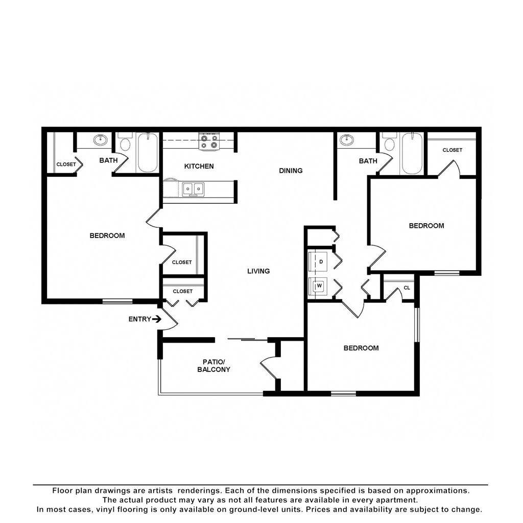El rango de alquiler de Apartamentos 1 dormitorios a 3 dormitorios en Lake Crossing Apartment Homes van desde $1,125 a $1,570