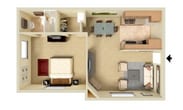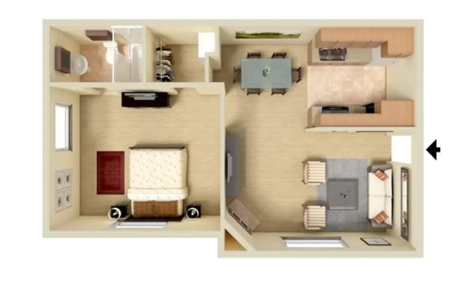 Modelo de apartamento: 1X1lfa$9301 Dormitorio, 1 Baño, 650 sq ftDisponible Ahora![]()