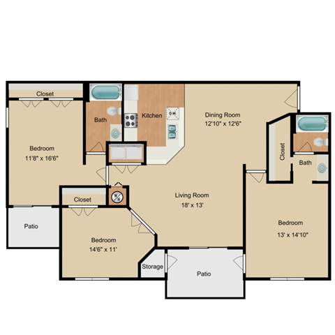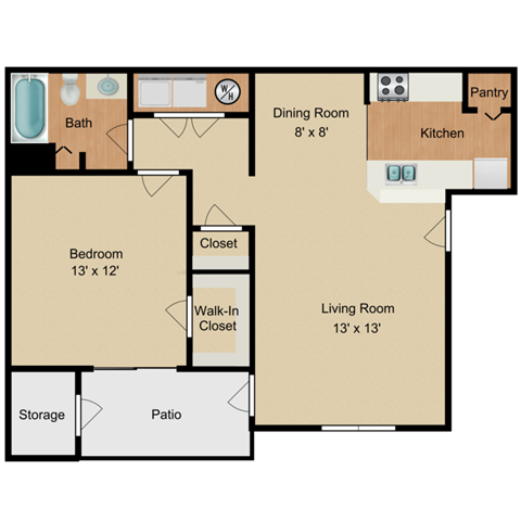 1 Dormitorio, 1 Baño, 770 pies²Disponible AhoraEl más grandeEsta opción tiene las unidades más grandes para este modeloGalería del Modelo