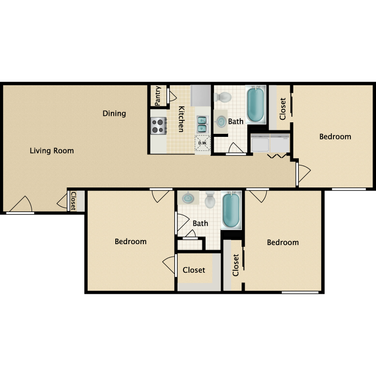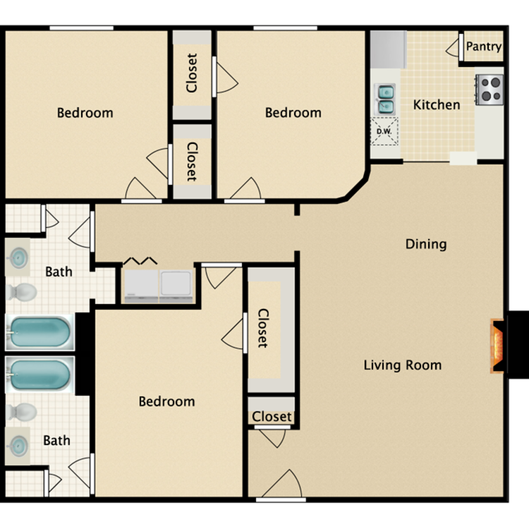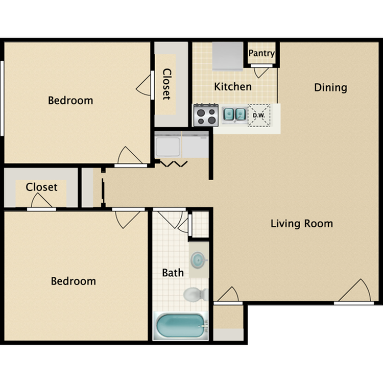 Modelo de apartamento: 1X1BLlame para Precios1 Dormitorio, 1 Baño, 684 sq ftNo Disponible![]()
