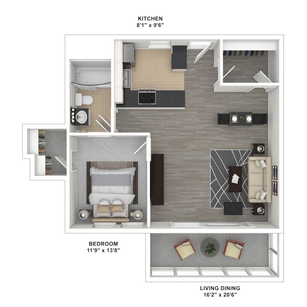 Modelo de apartamento: 1BR/1.0BADesde $1,4001 Dormitorio, 1 Baño, 770 sq ftDisponible February 15, 2026![]()