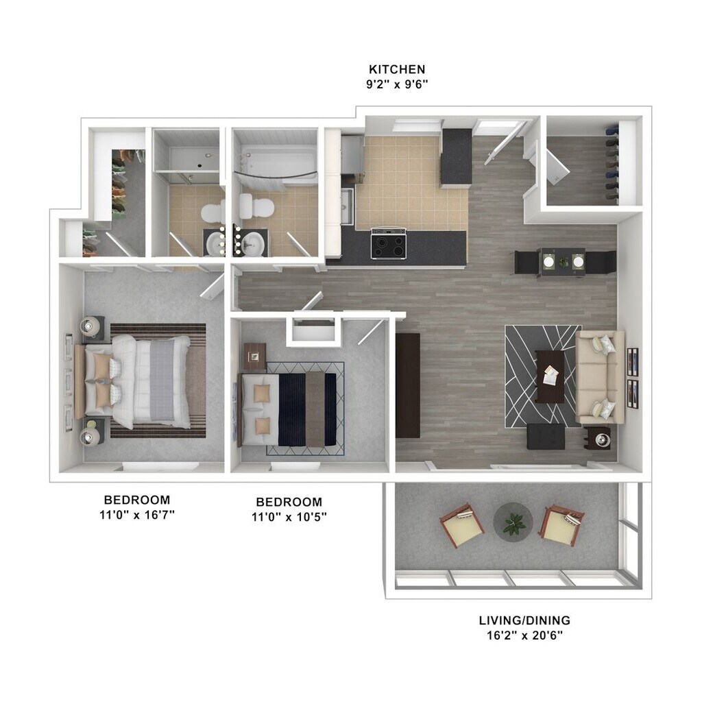 Modelo de apartamento: 2BR/1.0BADesde $1,5252 Dormitorios, 1 Baño, 1000 sq ftDisponible February 1, 2026![]()
