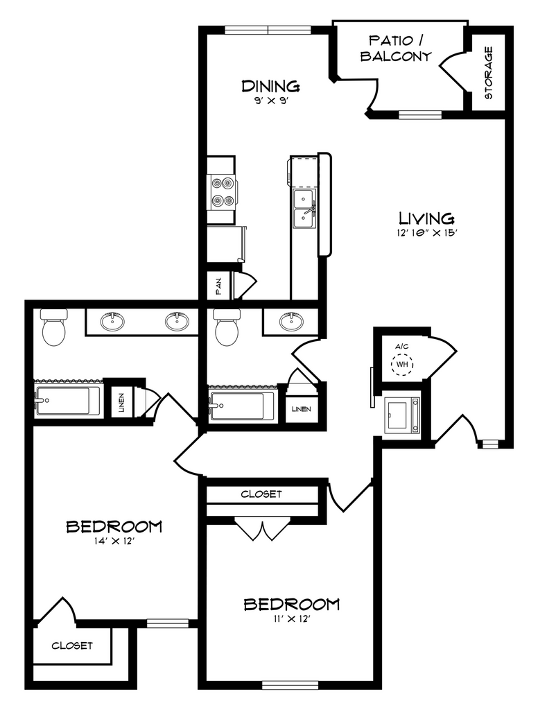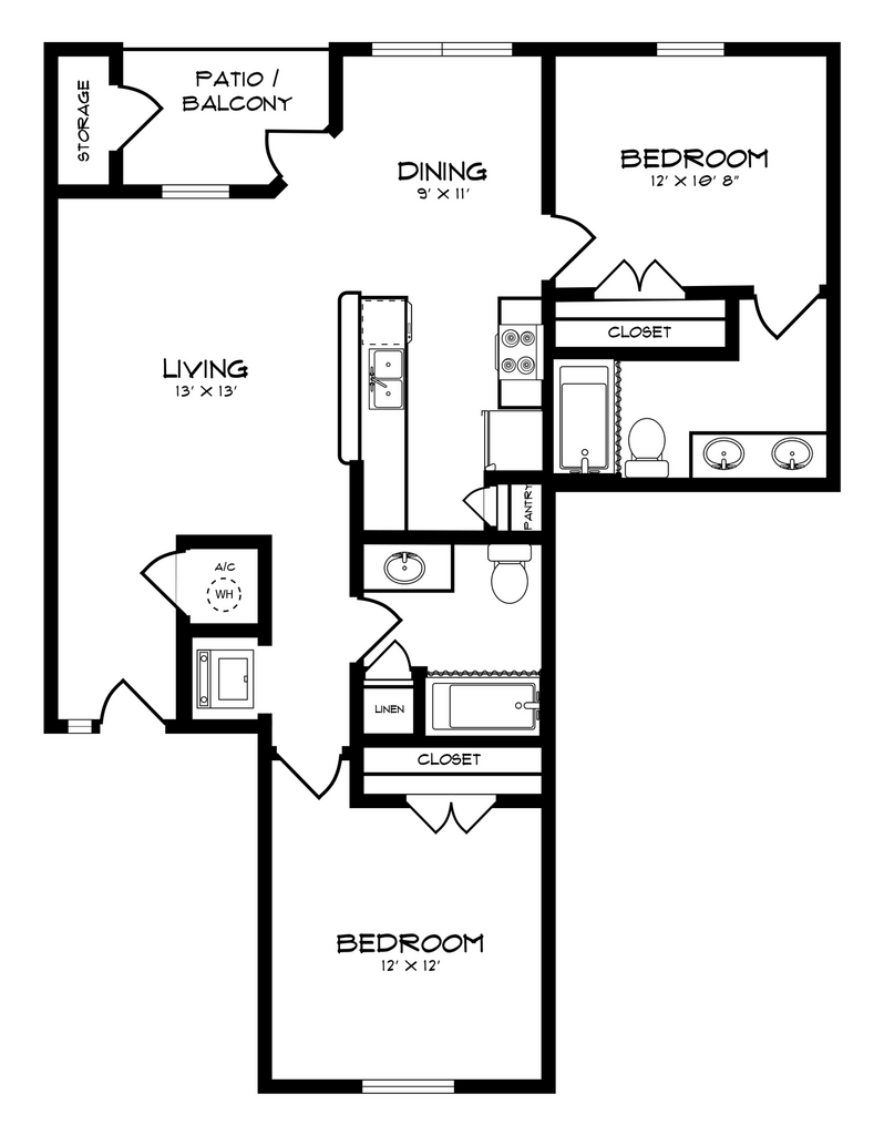 Modelo de apartamento: A2Llame para Precios1 Dormitorio, 1 Baño, 880 sq ftNo Disponible![]()