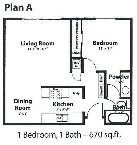 Modelo de apartamento: ADesde $2,0001 Dormitorio, 1 Baño, 670 sq ftDisponible AhoraPlanosFotos![]()